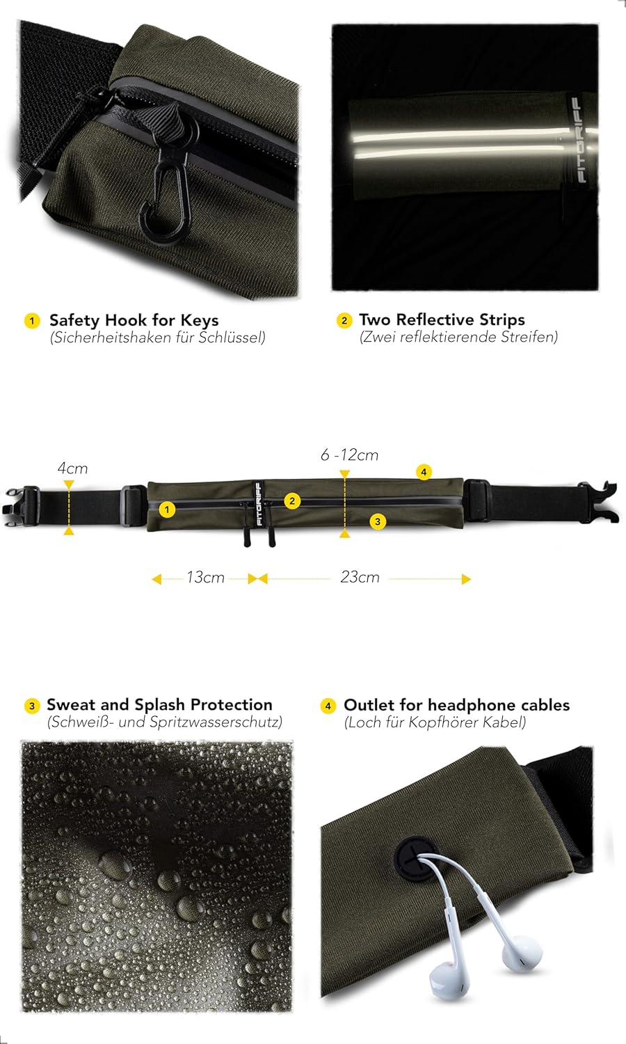 Fitgriff® Running Belt for Men & Women - Secure Jogging Pouch for Phone, Keys & Essentials - For All Cell Phones