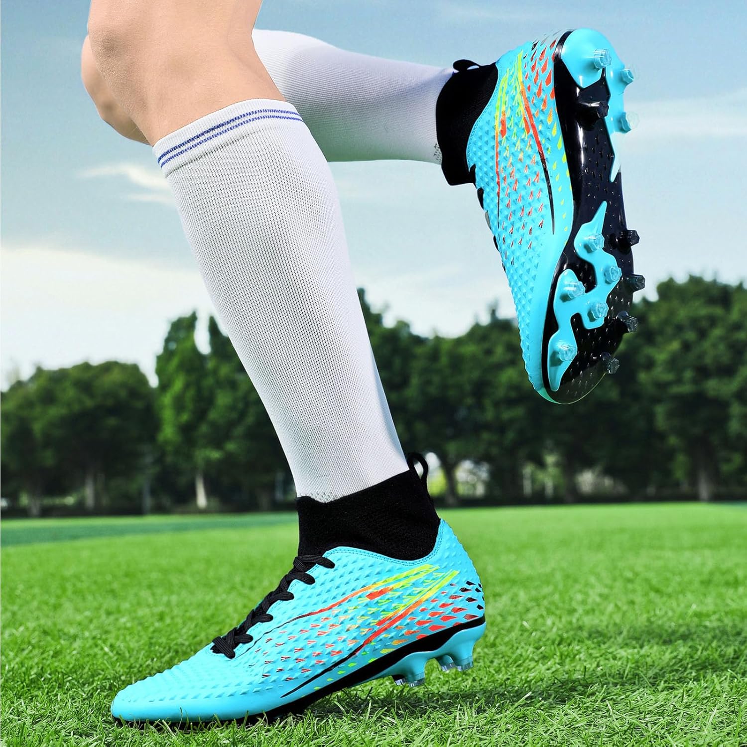 - [Breathable Upper]: Durable,breathable upper of this Soccer Shoes, create efficient circulation that the inner and outer layers breathe, provide outstanding breathability, keeping your feet dry and comfortable all the time.