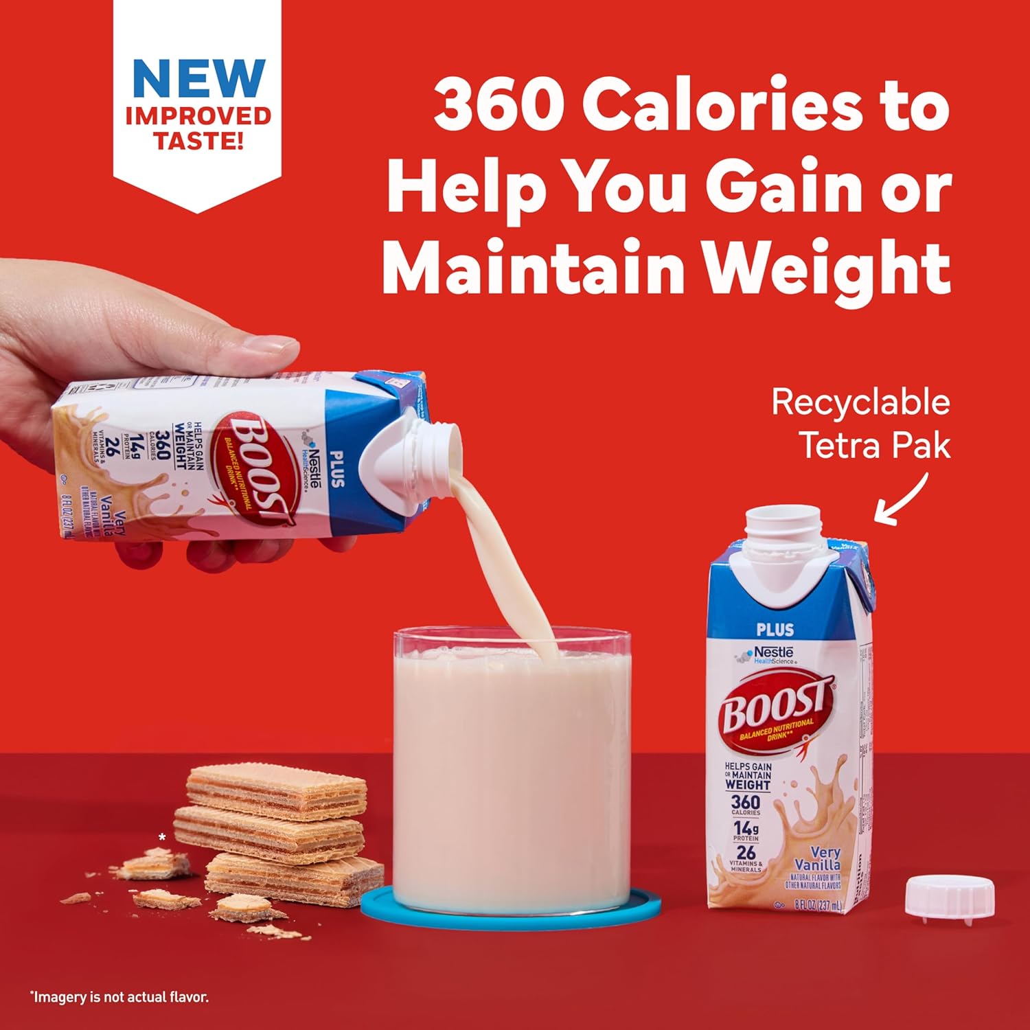 - Sustainability: You can now get BOOST Plus in recyclable Tetra Pak cartons; We're proud to help you choose products that are good for you in packaging that's better for the planet