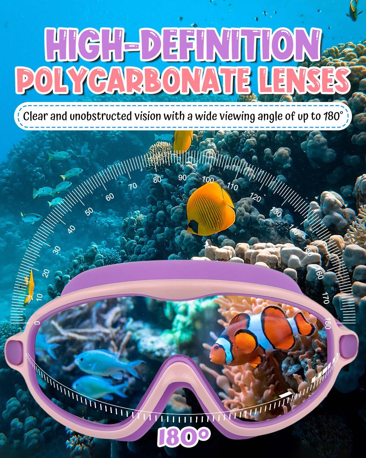 - 【PANORAMIC VIEW & EASY TO WEAR】 Our kids' goggles provide a mask-like fit, carefully designed to accommodate children's faces and ensure a comfortable and secure seal. This not only offers a beautiful and stylish appearance but also expands your child's underwater vision with a panoramic viewWith a convenient button-release design, these goggles are incredibly easy for kids to put on and take off by themselves, promoting independence and a hassle-free swimming experience.