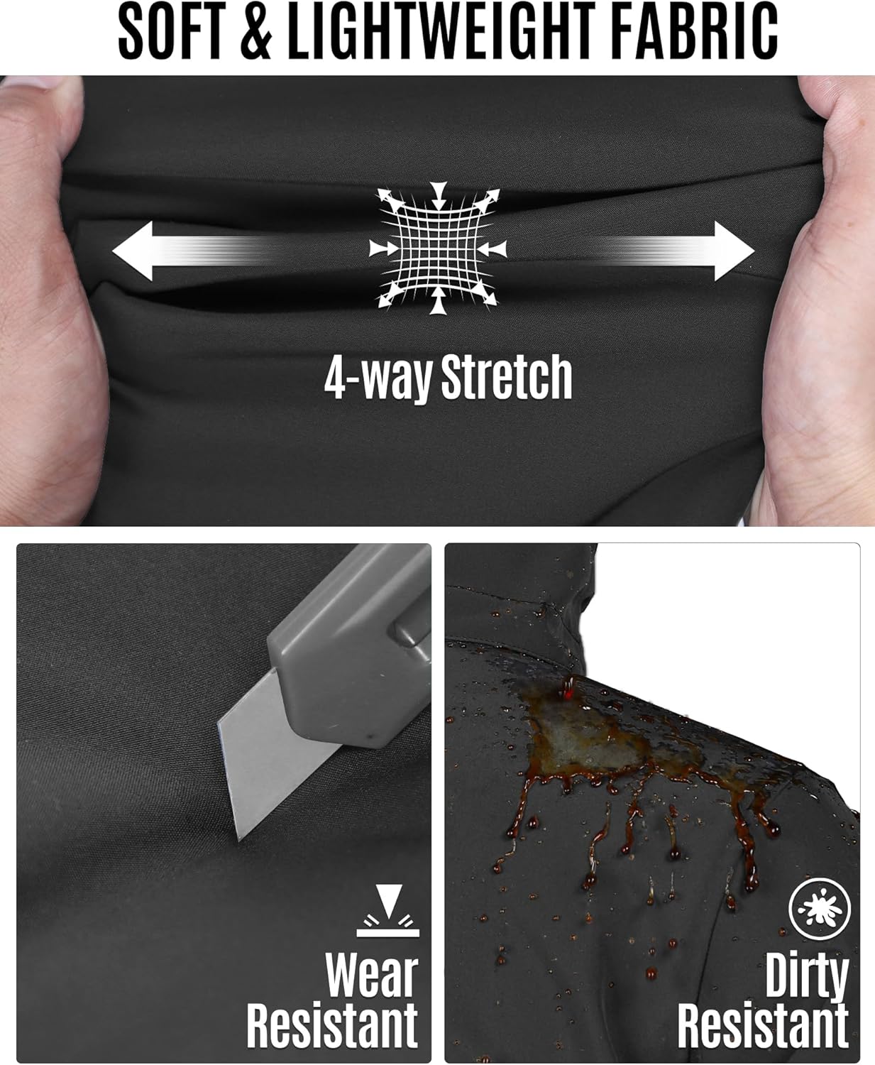 - Lightweight & Stretch: Soft shell jacket mens is made of soft and lightweight high-performance materials, which are skin friendly and comfortable to fit. The men's lightweight jackets is made of 4-way stretch fabric, which is full of elasticity. It can move with the body during outdoor activities such as hiking, running, and traveling. When wearing, there is no sense of restraint and movement is more flexible.