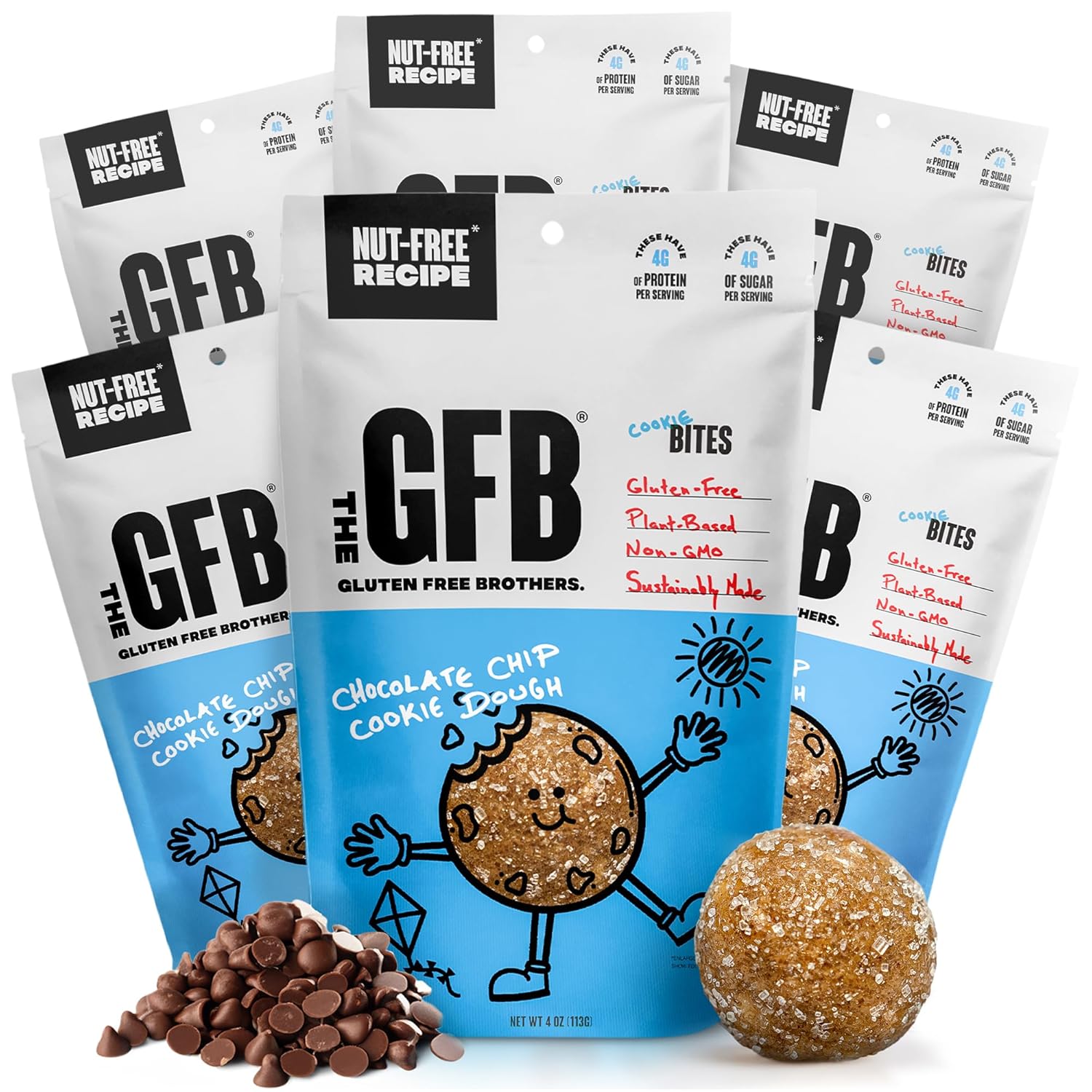 The Gluten Free Brothers Chocolate Chip Cookie Dough Nut Free Bites - Allergen Friendly, Gluten Free, Soy Free Protein Balls – Plant Based Vegan Non-GMO Snack Size Protein Energy Balls, 4 oz (6 Count)