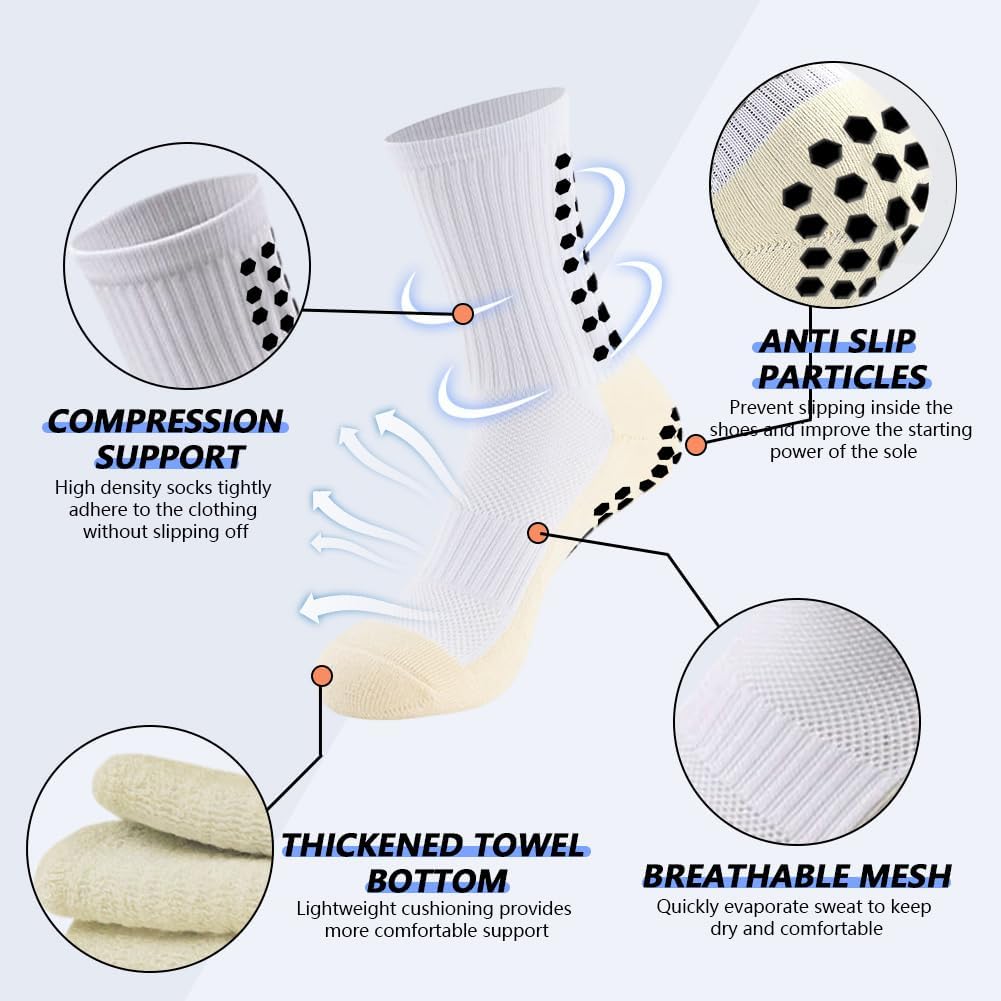 - [Excellent anti-slip performance] Our men's non-slip football socks have a new and unique design, and a large number of non-slip rubber sheets are added to the bottom of the socks, which greatly reduces the possibility of slipping on the soles of your feet when you wear our socks for sports, enabling you to perform faster Start and change direction to give full play to your strengths on the field