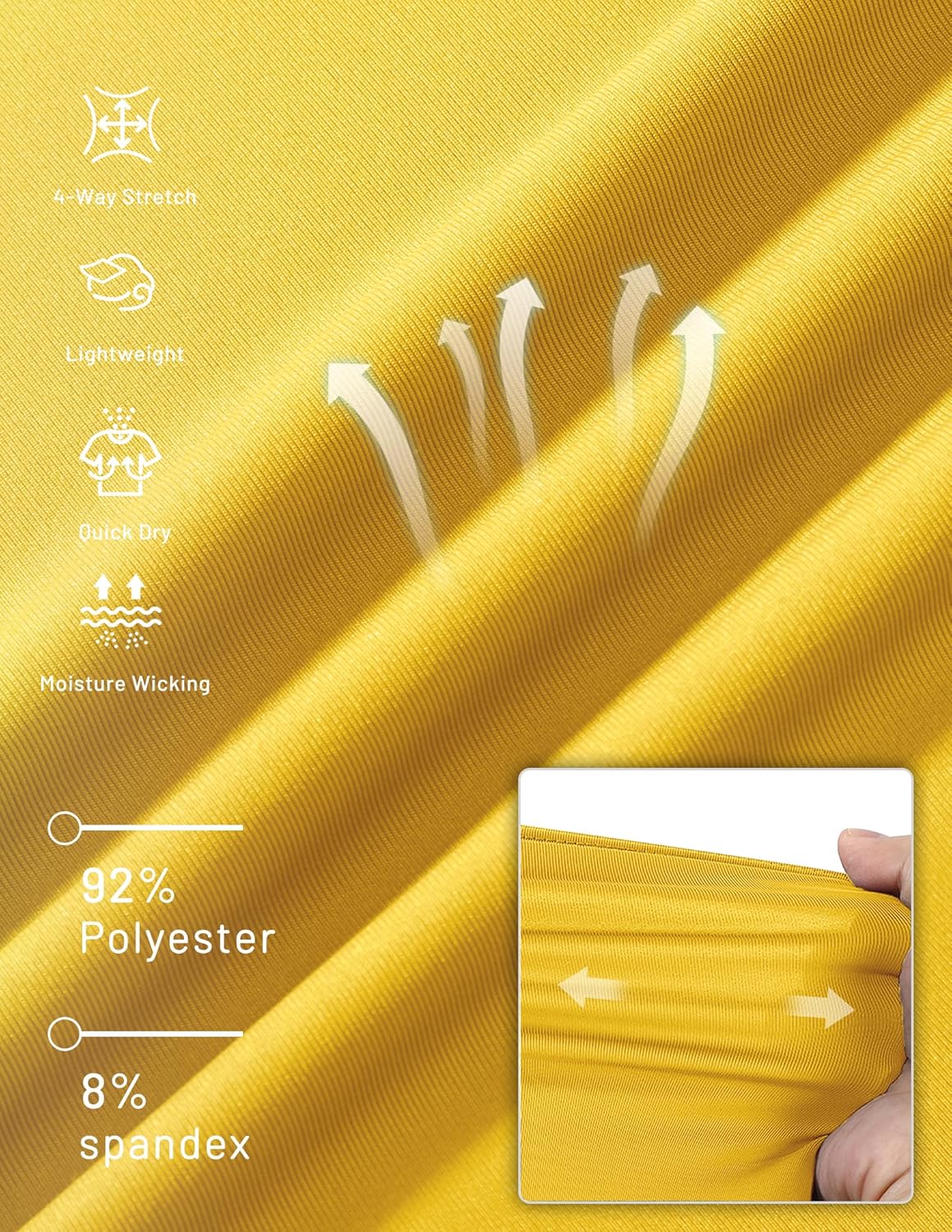 • Fabric type : 92% Polyester, 8% Spandex