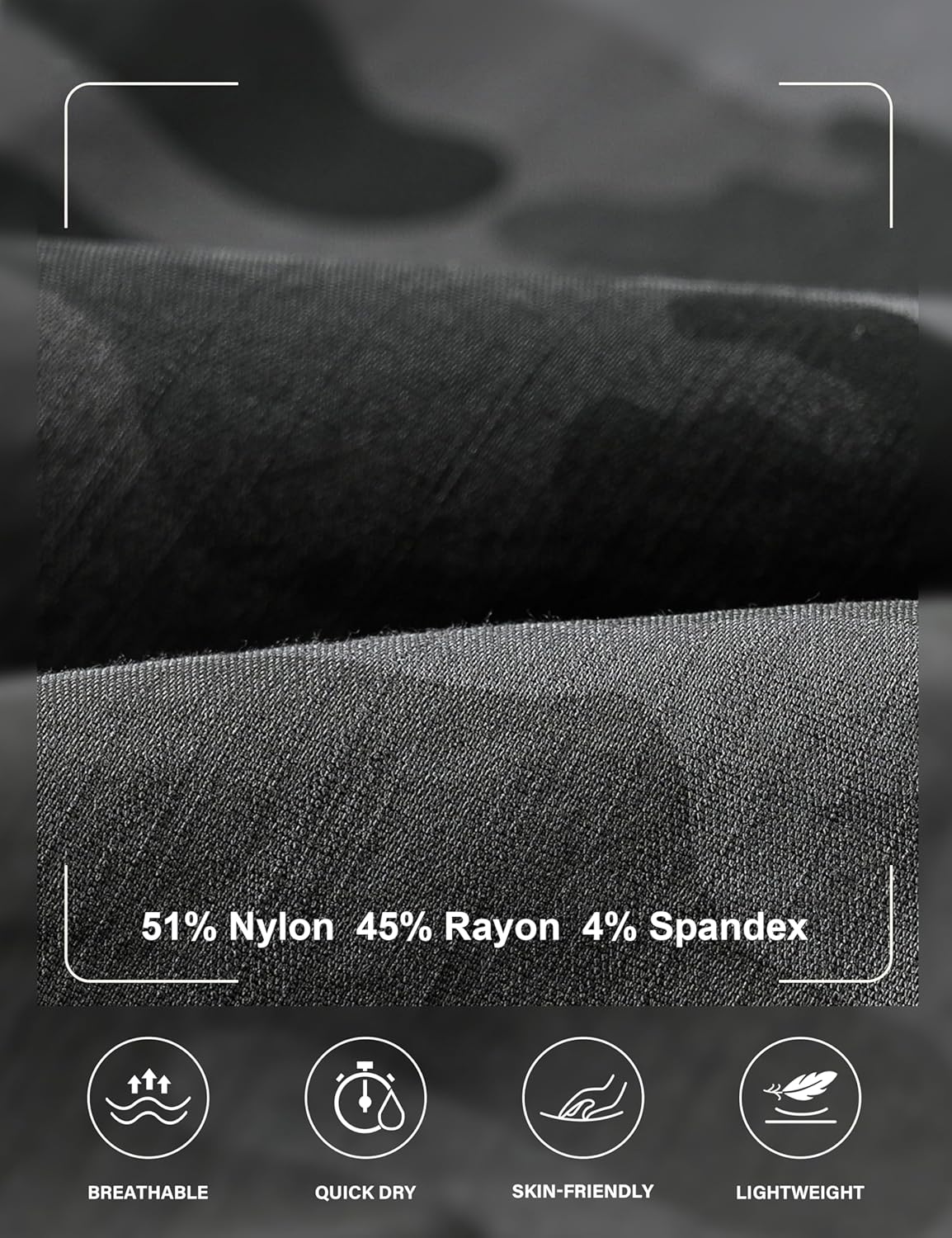 • Fabric type : 51% Nylon, 45% Rayon, 4% Spandex