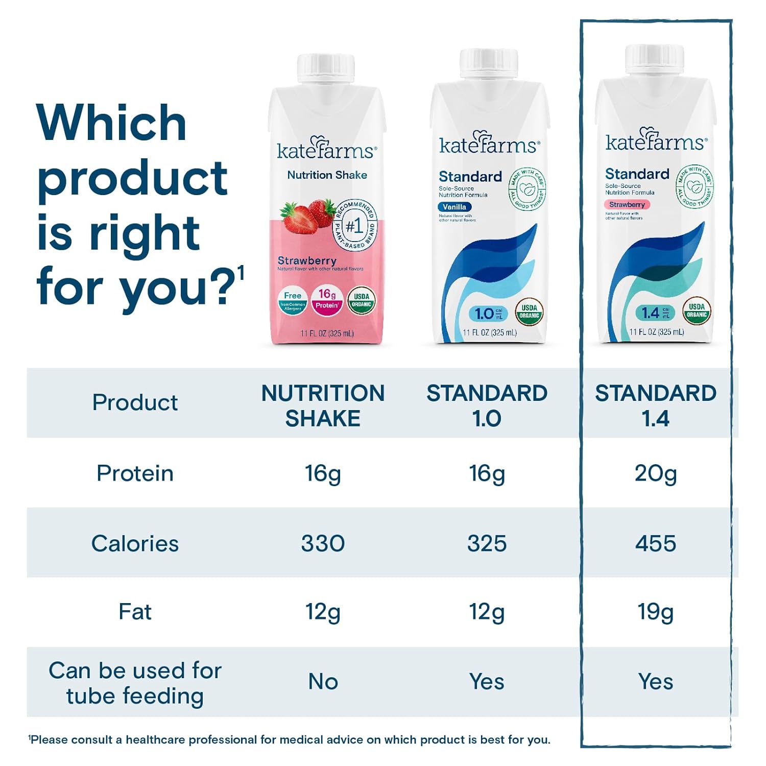- Available in four flavors: smooth and creamy vanilla, chocolate, strawberry or plain. Standard 1.4 is made with high-quality ingredients and without artificial flavors or sweeteners.