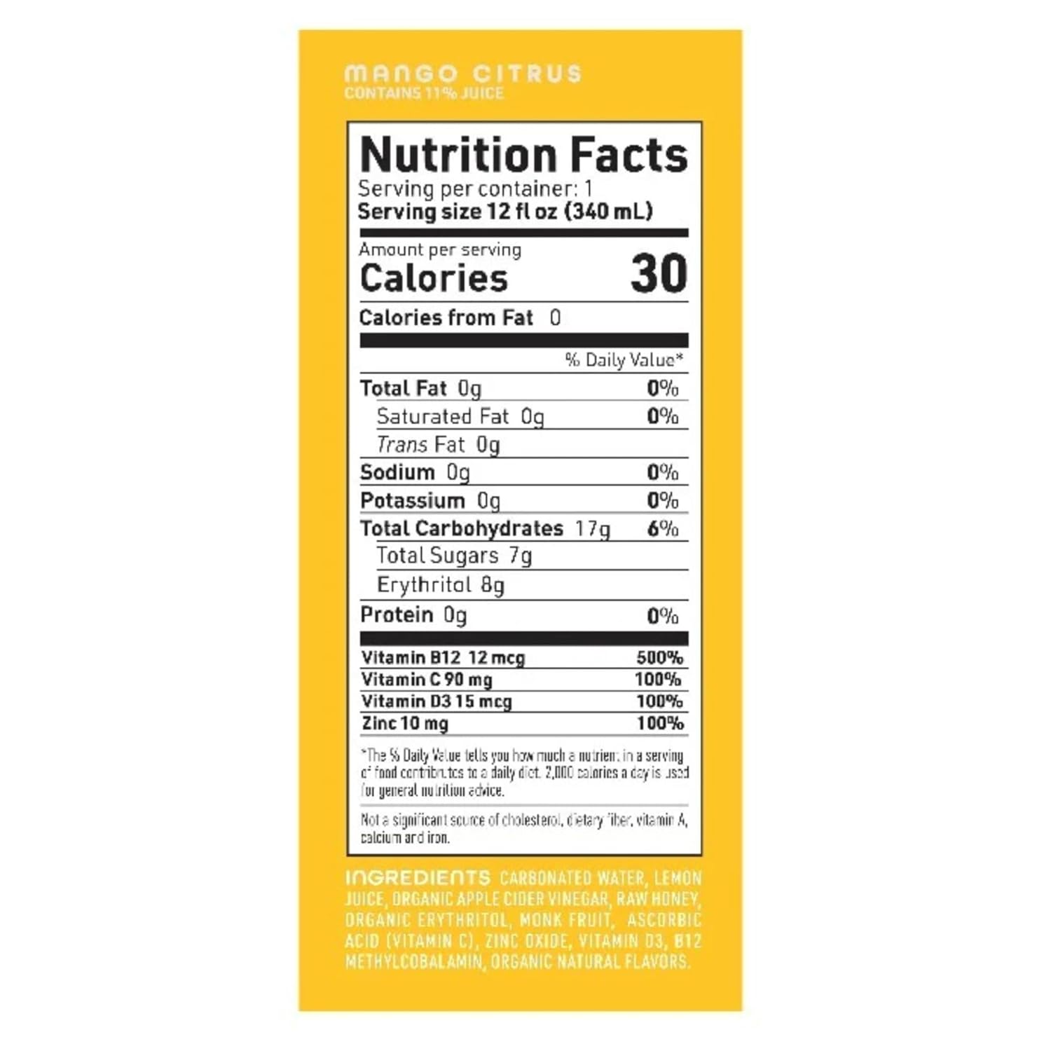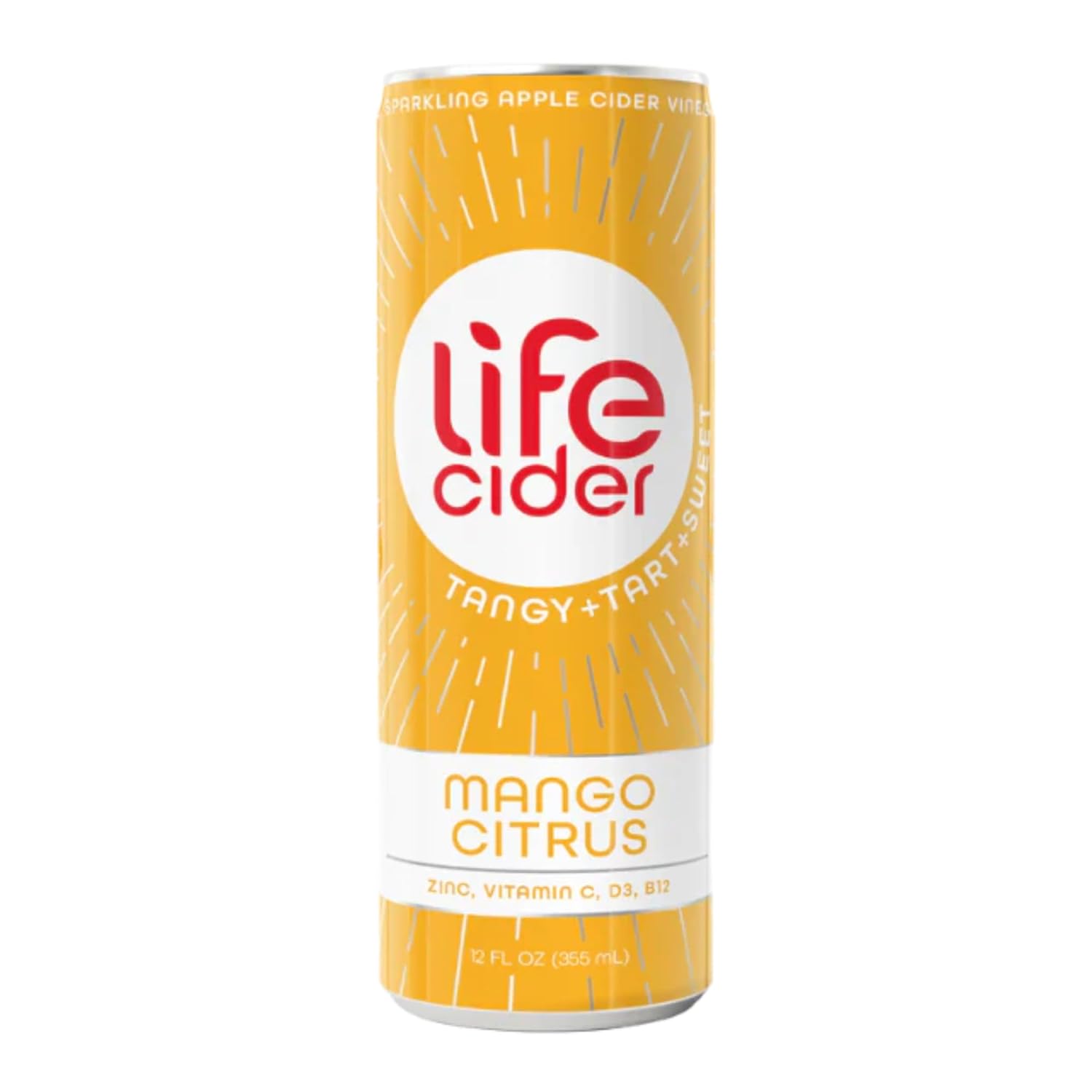 Life Cider | 12 Pack (12 Fl Oz) | Mango Citrus | Sparkling Apple Cider Vinegar Beverage | Digestive Health & Immunity Benefits | Low Calorie & Low Carb Drinks | Vitamins C, D3, Zinc, B12