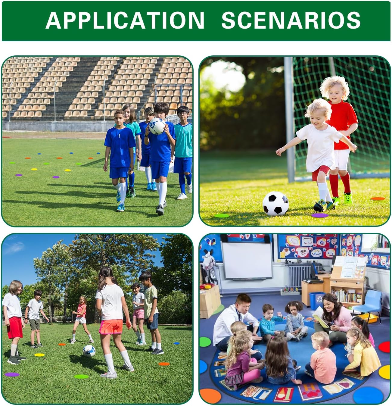 - 【USE INDOOR OR OUTDOOR】Spot Markers works on all surfaces including use on concrete, tile, carpet, wooden surface, natural grass and artificial turf fieldare;Great for sports,classroom or party activities- keep kids entertained for hours while enhancing their creativity and cognitive skills—Make your activities pop, active, and organized!