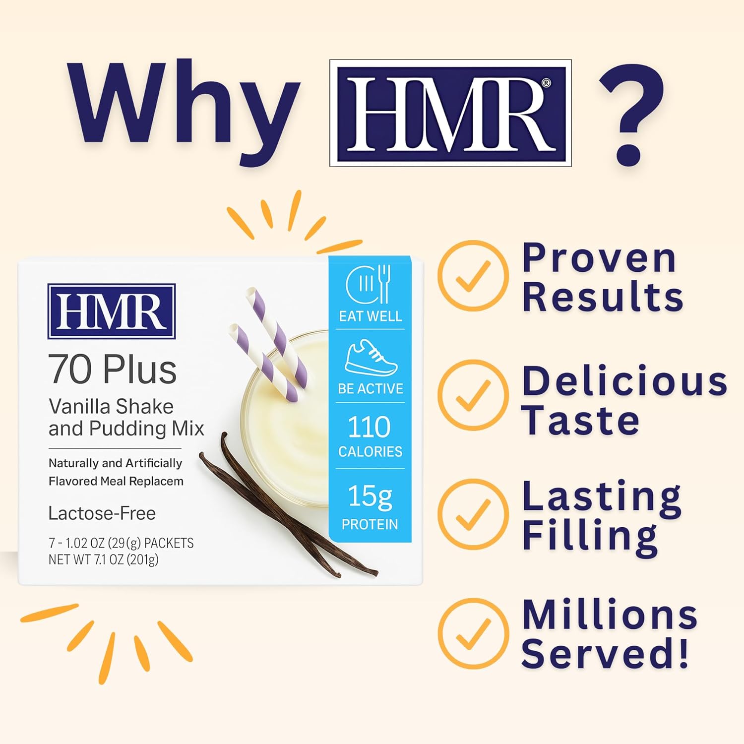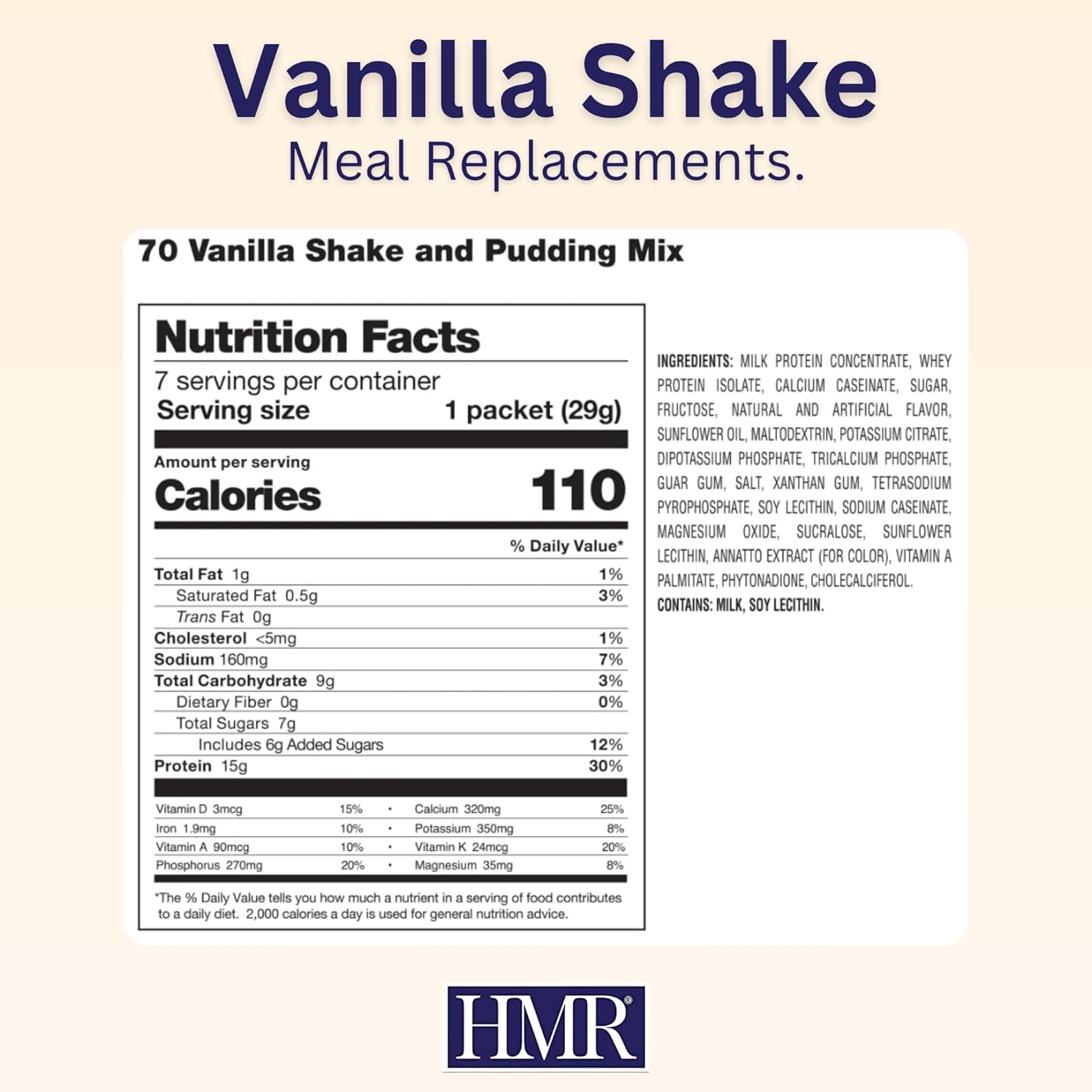 HMR 70 Plus Vanilla Shake & Pudding Mix | Meal Replacement Powder | Lactose-Free | 15g Protein | Supports Healthy Weight Loss | Easy to Make | Low Calorie | 21 Single Serving Packets