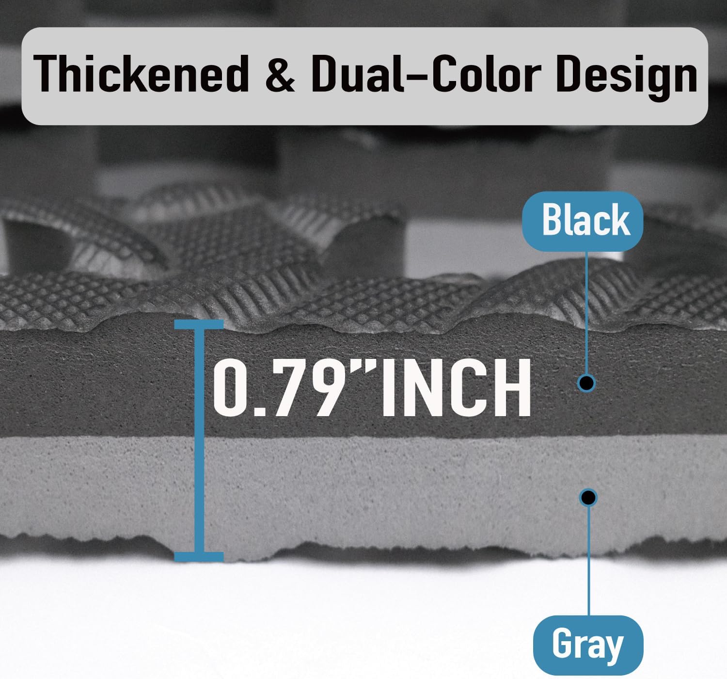 - High-Density Thickened Design: Upgraded to a thickness of 0.79 inches, this mat features high-quality, reliable materials with high-density EVA foam. It offers comfortable and durable support, providing superior cushioning and shock absorption while reducing noise.