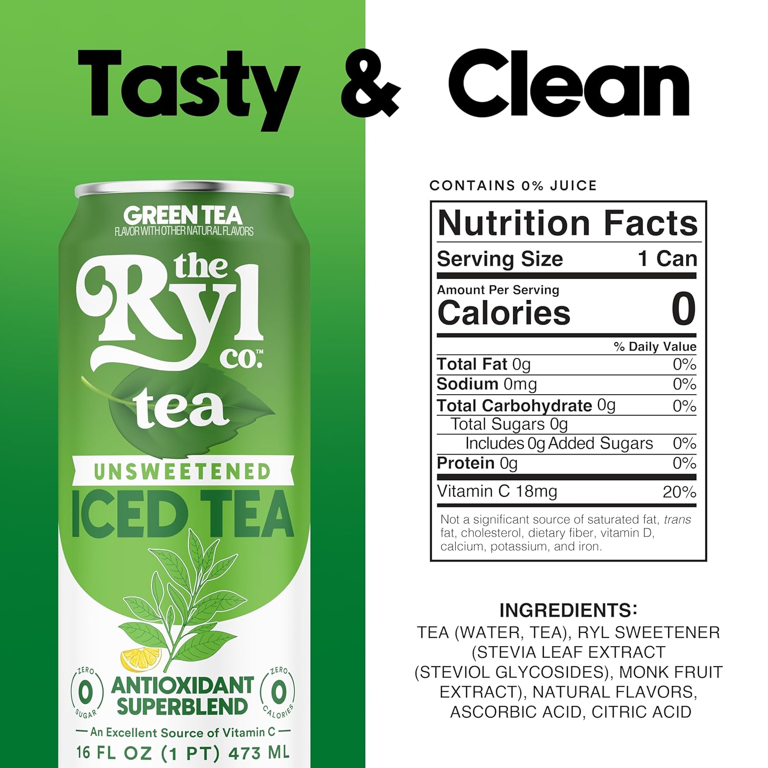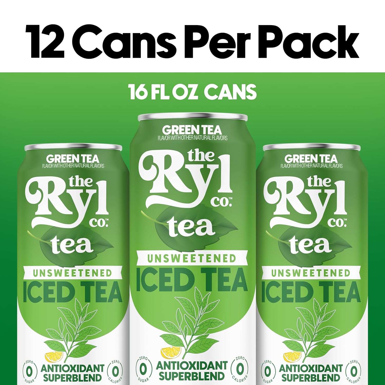Ryl Unsweetened Green Iced Tea – Antioxidant Superblend, No Artificial Ingredients, Zero Sugar, Zero Calorie, Low Carb, Non-GMO, Kosher, Gluten Free, Made in the USA, 12-Pack, 16 Fl Oz