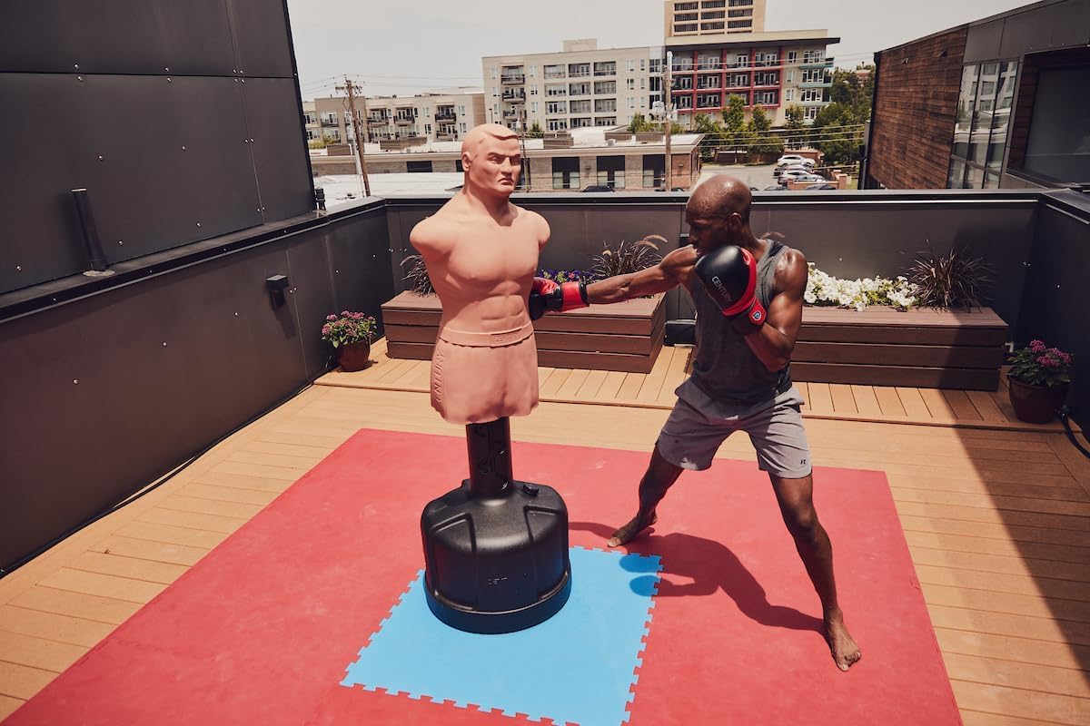 - REALISTIC PUNCHING BAG - Well, it is a boxing bag with stand, but also so much more as the unique mannequin features make it lifelike with physical details included facial features and a strikeable 30" torso with a width expanding out to 30" wide