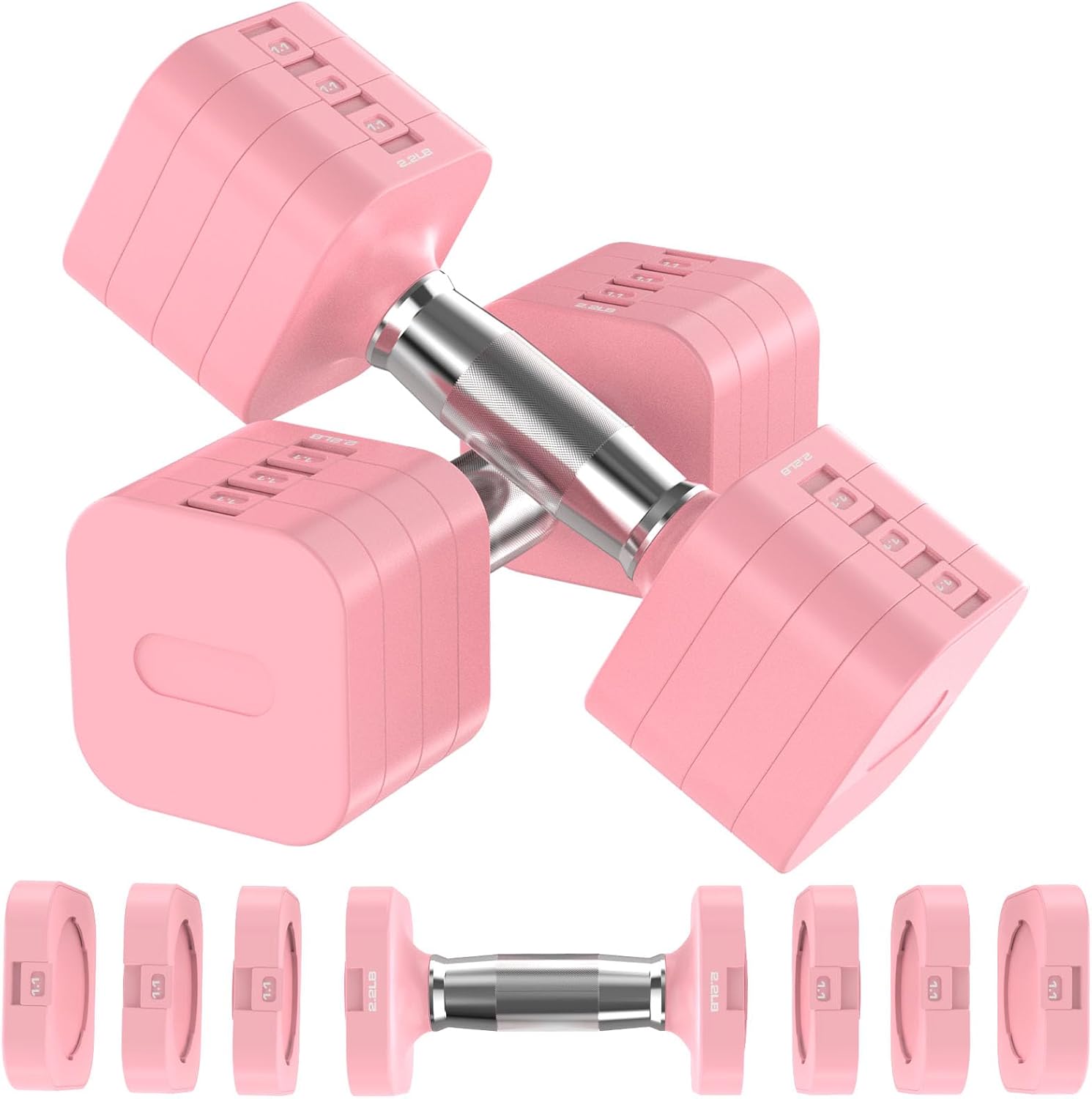 - 【Square Weight Block】Our adjustable dumbbell set has a square shape, allowing you can find more usage of the weight set such as push-ups. In addition, the multiweight dumbbell set will not roll around for safety.