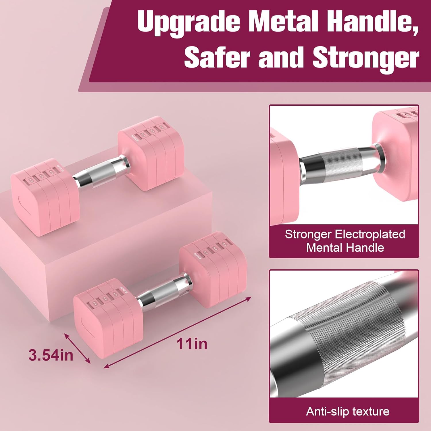 22LBS Adjustable Dumbbells Set, Adjustable Weight Dumbbells with 4 Levels 4.4lb, 6.6lb, 8.8lb, 11lb, Hand Weights Sets for Women/Men Home Gym Full Body Workout