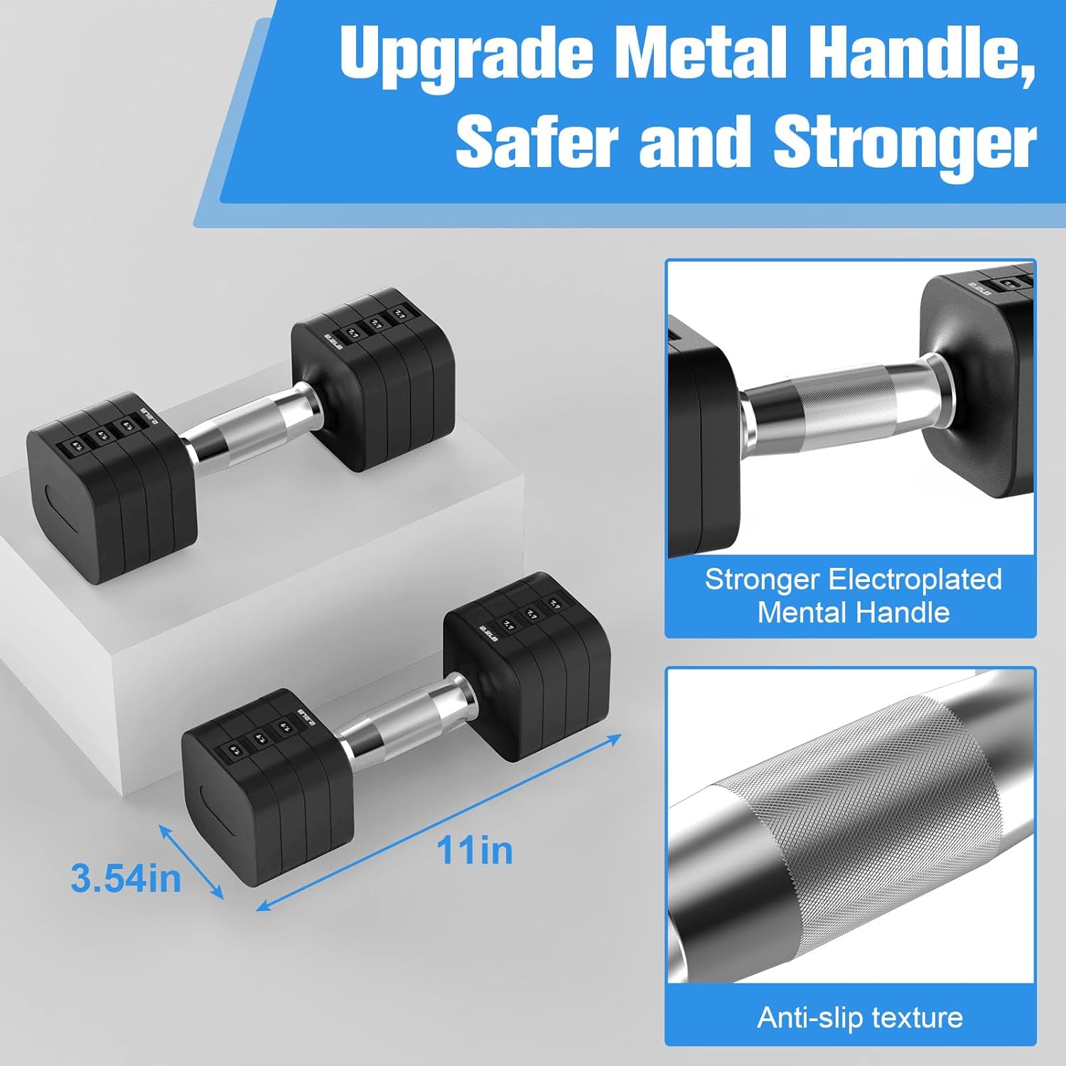 - 【Electroplated Metal Handle】The handle of this adjustable weight uses special electroplated metal for stability and durability. The hand weight set features non-slip bump to avoid slipping after sweating.