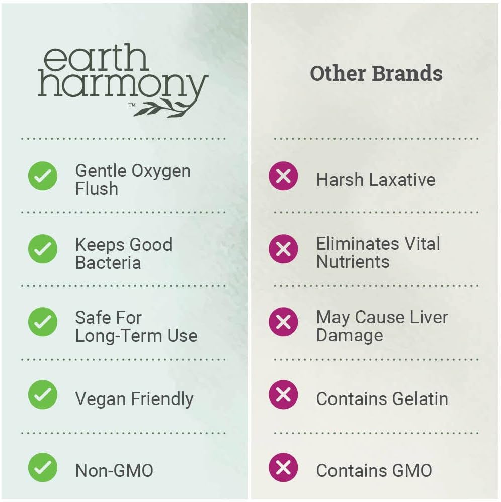 - Oxygen Powered Detox - Our cleanse uses ozonated magnesium to scrub your intestines, flushing out poop and tough fecal matter safely. Gentle alternative to cascara sagrada and psyllium husk, which can scrape and cause harm to the intestines.