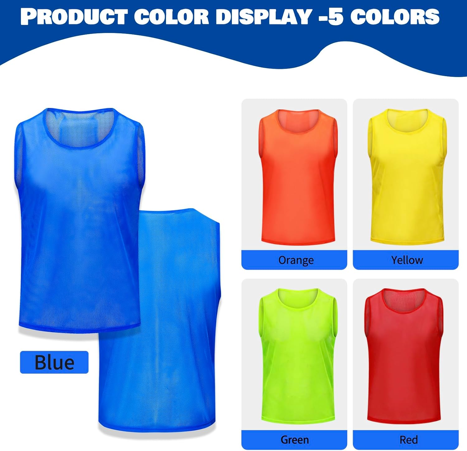 • 【Style Selection】---In order to meet the needs of different groups of people,our soccer training vests offer 4 color combinations(red+blue,yellow+blue,green+orange, red+blue+green+orange)and 3 types of quantity ratio(12pack/24pack/48pack) to choose from.