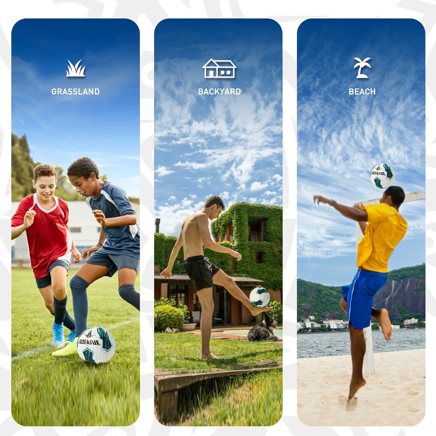 - 【Revamped for enhanced outdoor soccer experience】Our soccer ball boasts a premium PU cover and machine-stitching technology, making it ideal for every age and skill level. Whether on grass, in the park or on a smooth surface, it guarantees exceptional performance. Perfect for team training, parents and kids can bond over some thrilling soccer action. Experience endless soccer fun with our ball!