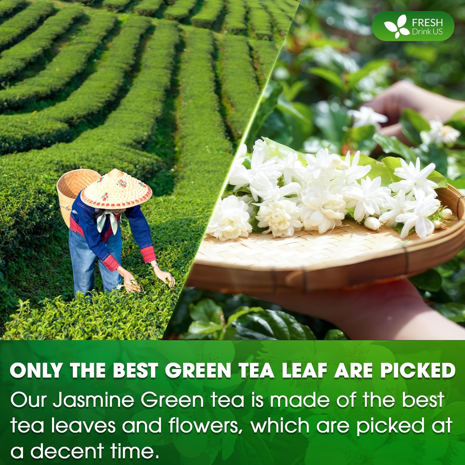 FreshDrinkUS, Premium 55 Jasmine Green Tea Bags, 100% Natural & Pure from Jasmine Green Tea. Jasmine Green Herbal Tea. Made with Natural Material Tea Bags. No Sugar, No Gluten, Vegan.