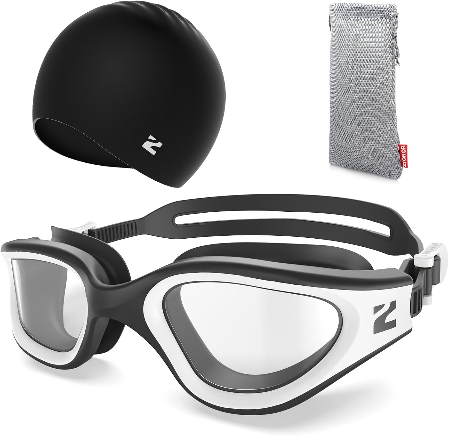 ZIONOR G1 Lite Swim Goggles with Swim Cap Comfortable Anti-fog Swimming Goggles Cap Set for Adult Men Women