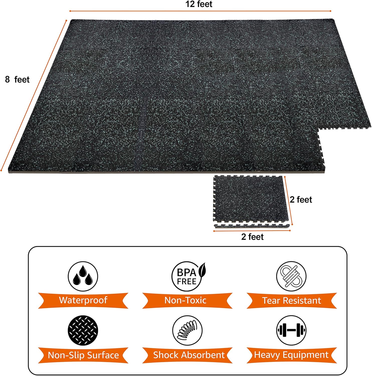 Sivan Fitness 1/2" Thick Rubber Top High-Density EVA Foam Gym Flooring for Home Gym - 48 Sq Ft Exercise Mat Tiles for Workout, Yoga, MMA, Heavy Exercise Equipment Mat - 12 Interlocking Gym Floor Mat