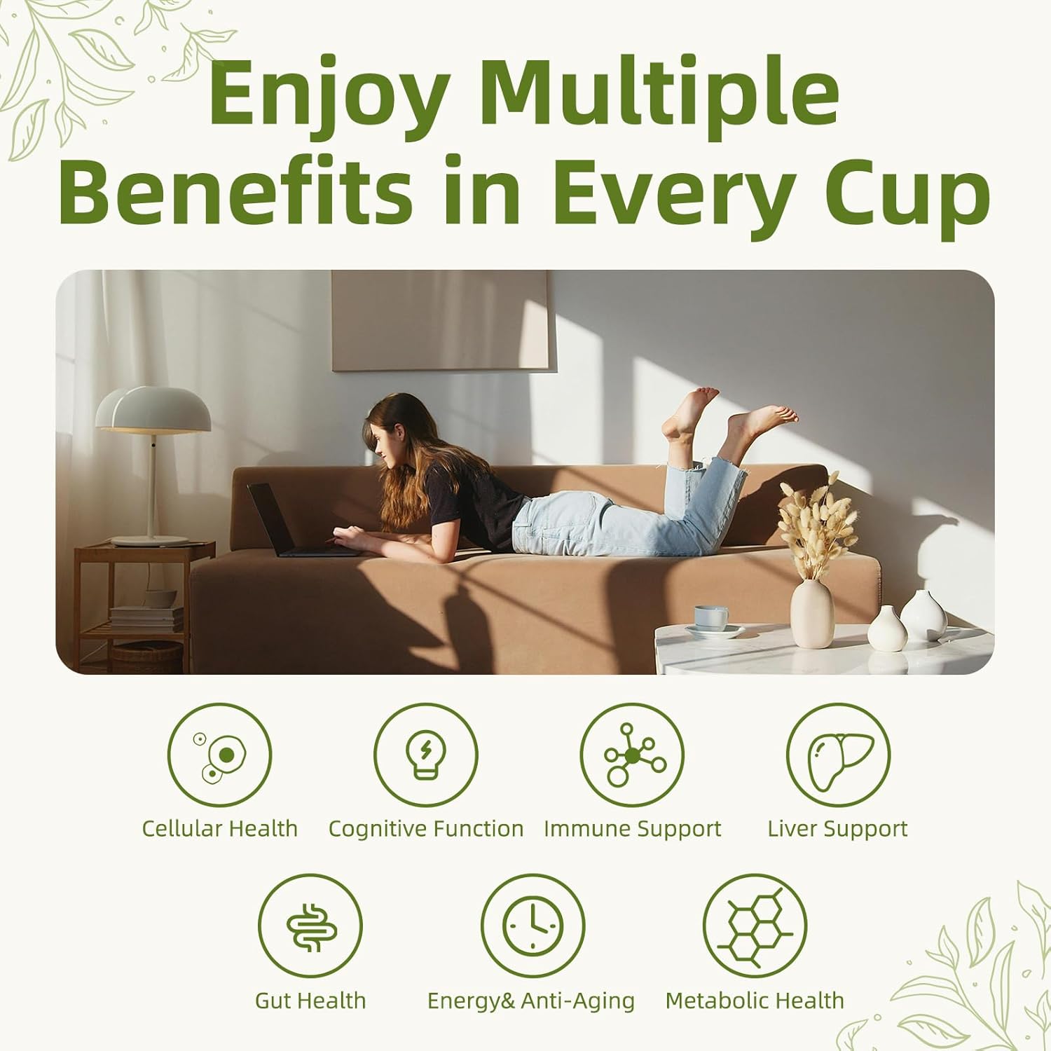 - Easy to Make: Our matcha with mushrooms are convenient and delicious. Just pour one sachet of mushroom matcha powder into a cup. Add hot water and stir until dissolved. Or enjoy iced as well. You can have a comforting matcha cup without machines needed and other milk or sweeteners added.