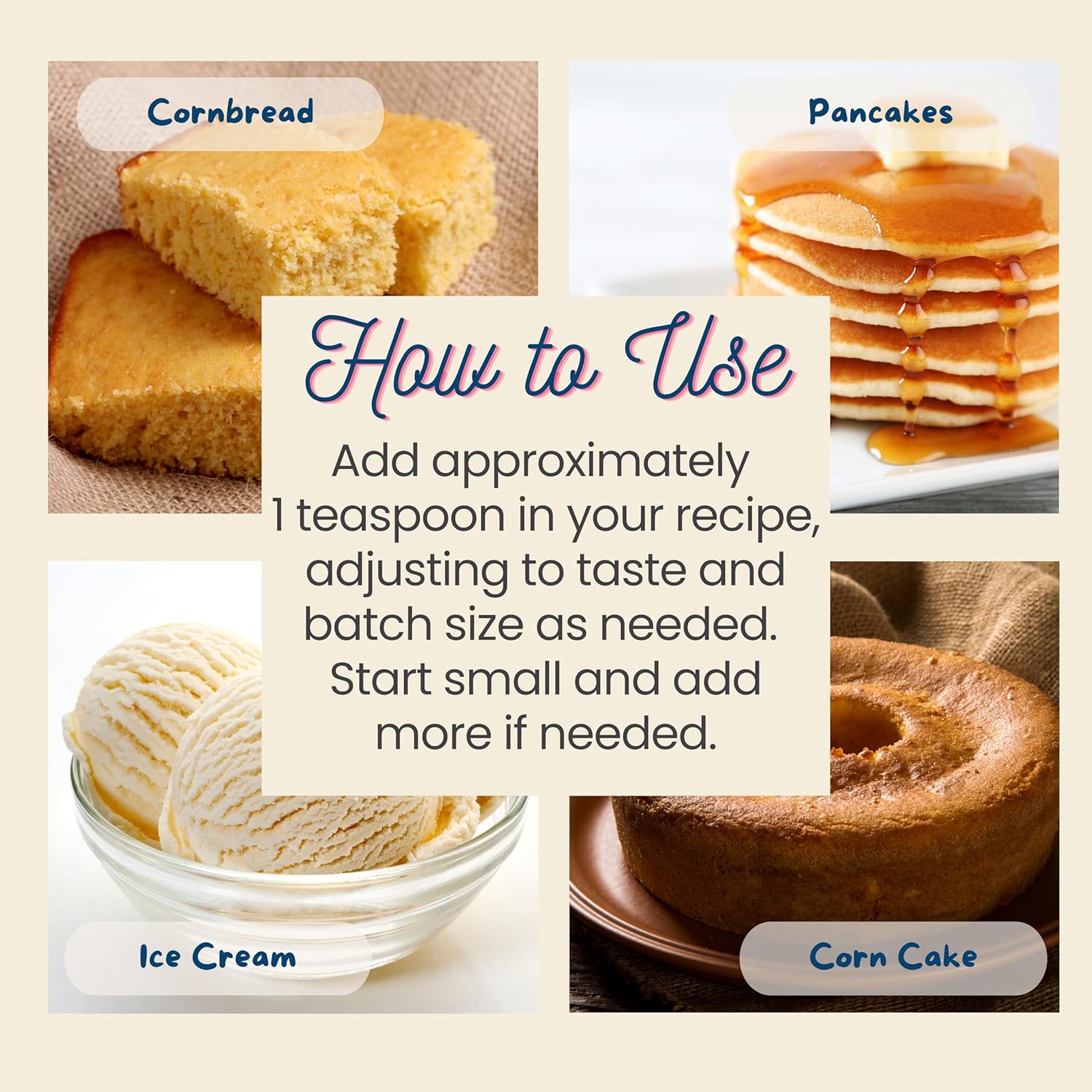 - APPLICATIONS: Just one teaspoon can add the real taste of freshly-picked sweet corn in your baking, ice cream and beverages. It's ideal for baking keto cornbread!