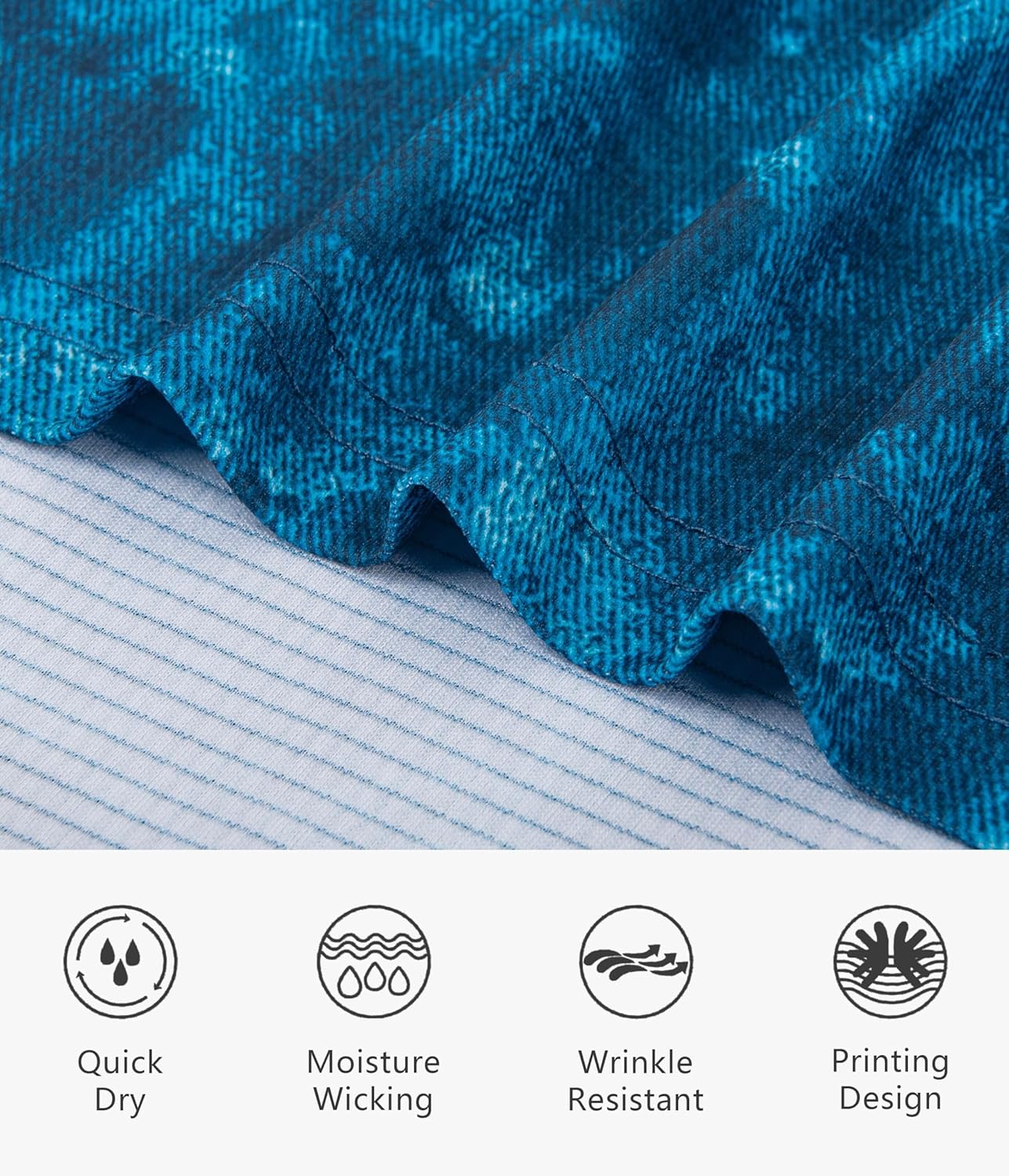 - Men's all-over printed quick drying collared shirts wick away moisture remarkably fast, rapid cooling tech material to keep you cozy and cool feeling after sweating. Men's modern patterned golf shirts use stretchy and durable fabrics with easy care and keep good shape, well-made stitching. Side vent design for greater freedom and mobility.