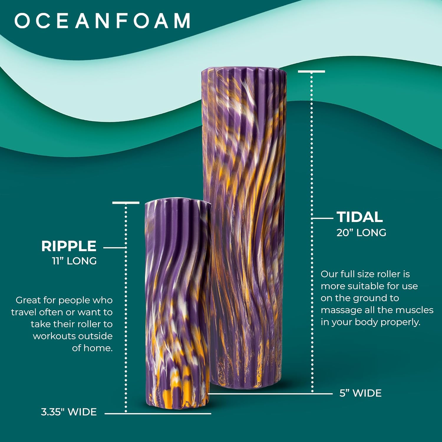 Oceanfoam Tidal Roller - Purple, Gold & Natural Marbled - Muscle Massage Foam Roller for Back Pain & Stretching - Firm & Ergonomic Wide Wave Textured - Yoga, Athletics, Wellness - Full Size, 20" x 5"