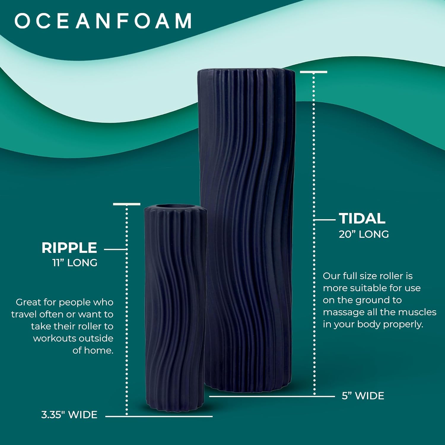 Oceanfoam Tidal Roller - Dark Navy - Muscle Massage Foam Roller for Back Pain & Stretching - Firm and Ergonomic Wide Wave Textured - Yoga, Athletics, & Wellness - Full Size, 20" x 5"