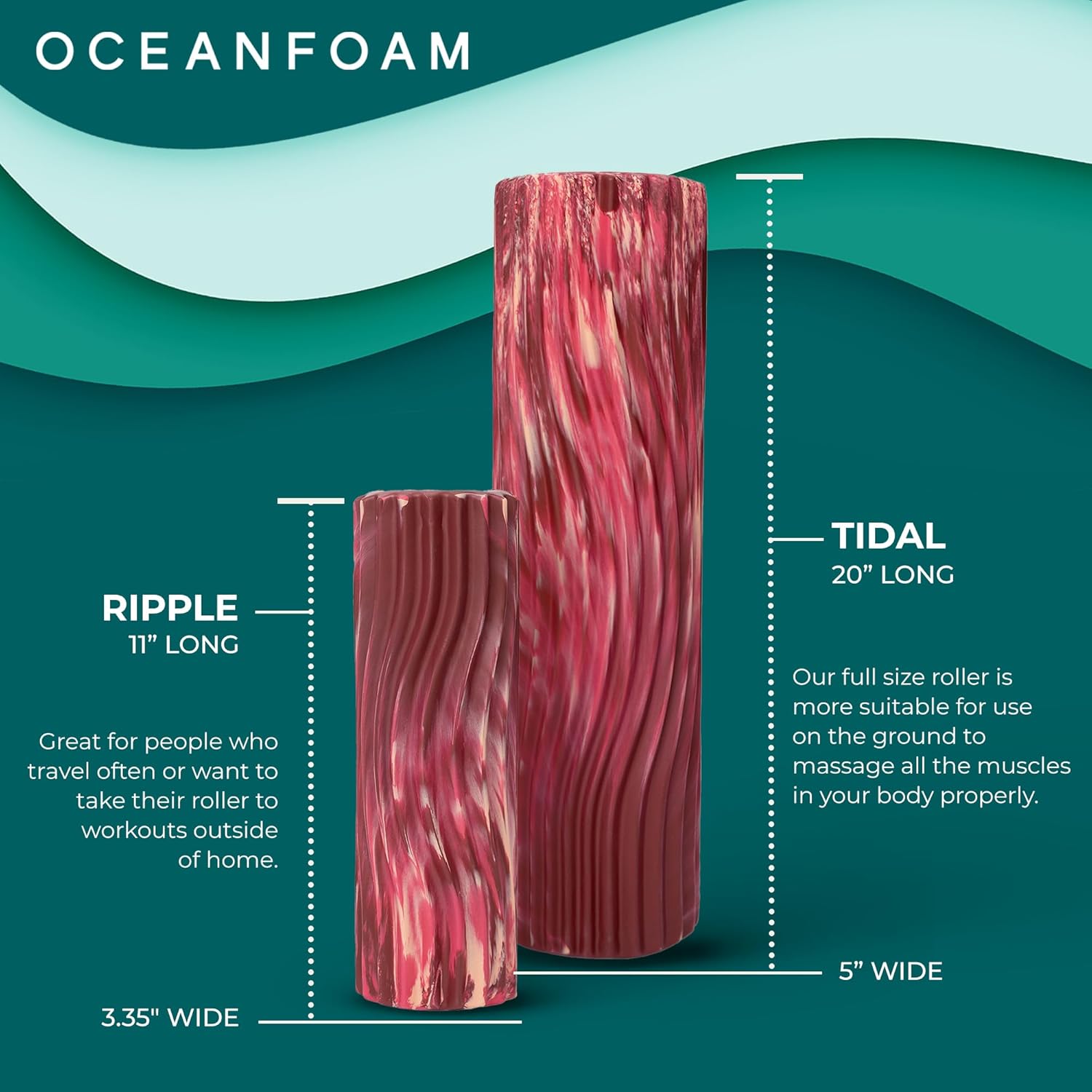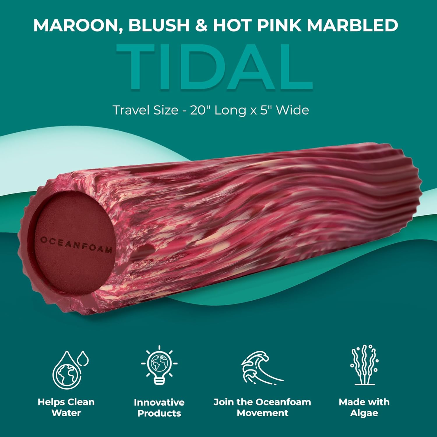 Oceanfoam Tidal Roller - Maroon, Blush & Hot Pink Marbled - Muscle Massage Foam Roller for Back Pain & Stretching - Firm & Ergonomic Wide Wave Textured - Yoga & Athletics - Full Size, 20" x 5"