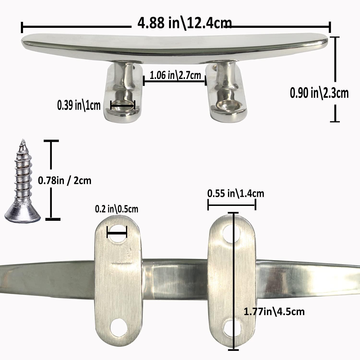 - Attention: 4.88 inch is the small Dock Cleat, Size: 4.88 Inch / 12.4 cm, About 0.22 lb/102 g (Per Dock Cleat), Screws: 20 ( Screws length 0.78 in / 20 mm, All 316 Stainless Steel)