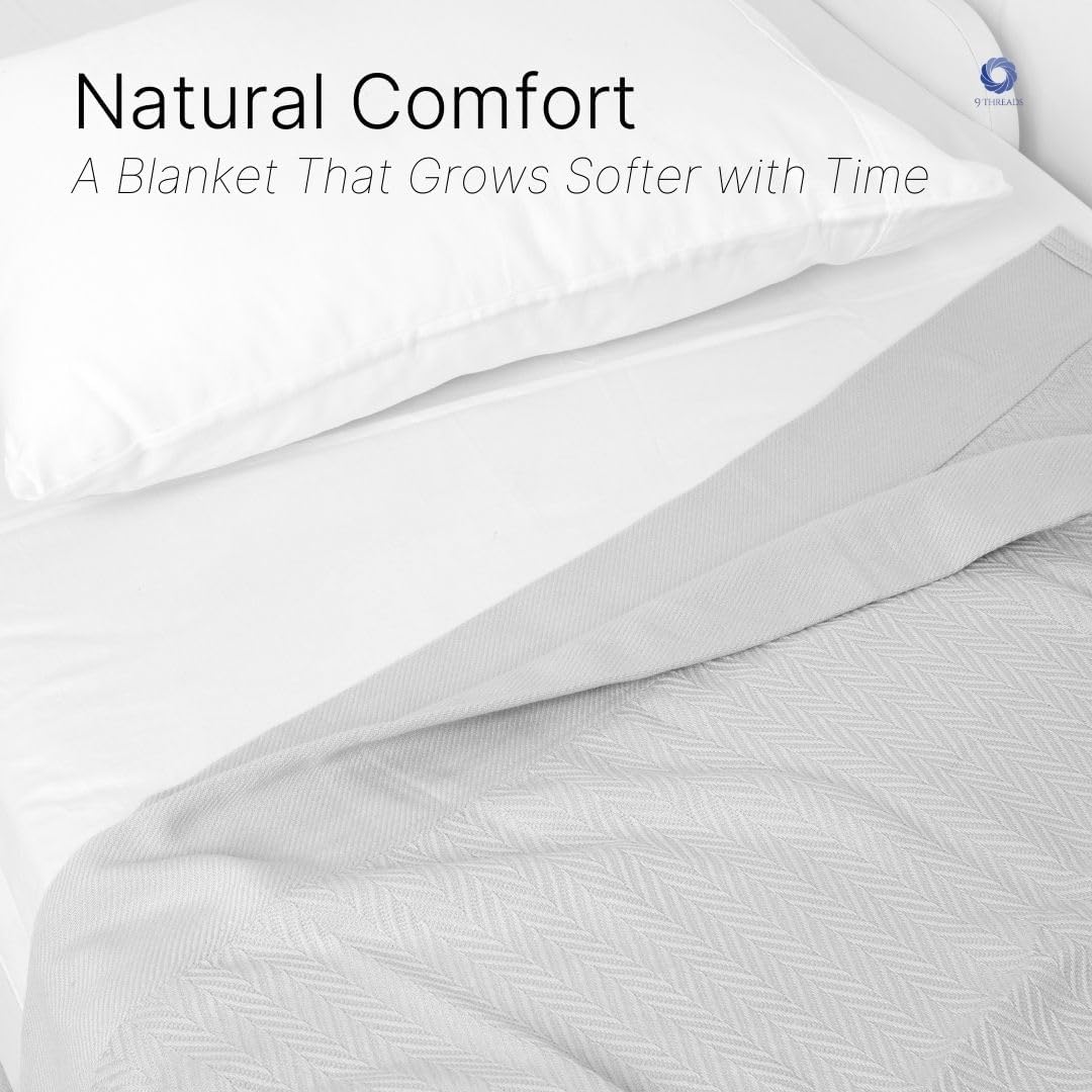 - Versatile Throw Blanket for Every Occasion: Perfect for any setting—whether in the car, on the couch, or in the bedroom—this stylish, lightweight throw is designed for multifunctional use. Its elegant herringbone pattern lends a flair that enhances your modern home decor. This all-season blanket serves multiple purposes - Thermal blankets during winter and cooling blanket during summer. Made of 100% Cotton it is also hypoallergenic and soft. It is the best alternative for wool blankets.