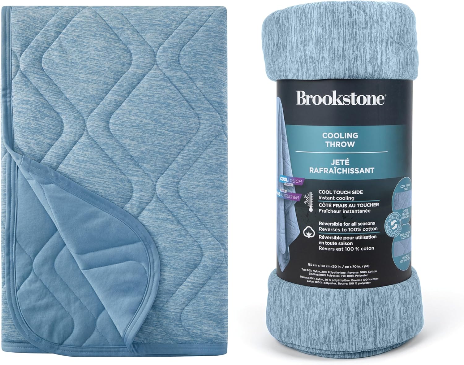 Brookstone Cooling Comfort Throw - Innovative Cooling Dual-Sided Throw - Oversized Cool Blanket for Hot Sleepers - Cooling Blankets for Sleeping - Nylon and Polyethylene Cooling Blanket - Faded Denim
