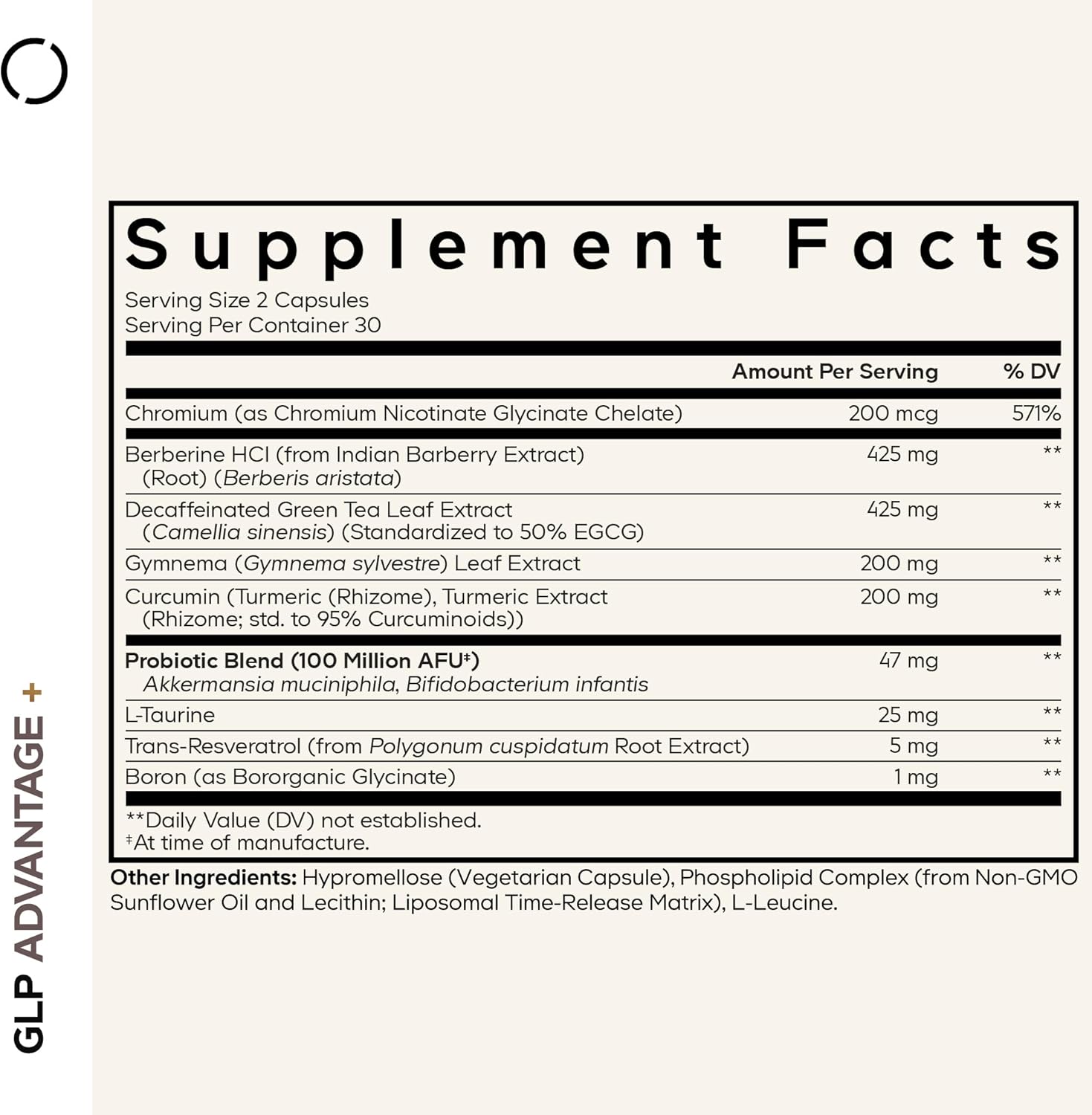 - Comprehensive Formula with Key Ingredients: Codeage GLP-Advantage+ supplement features Chromium and Berberine HCl, along with Decaffeinated Green Tea Leaf Extract standardized to 50% EGCG and Gymnema Sylvestre Leaf Extract.