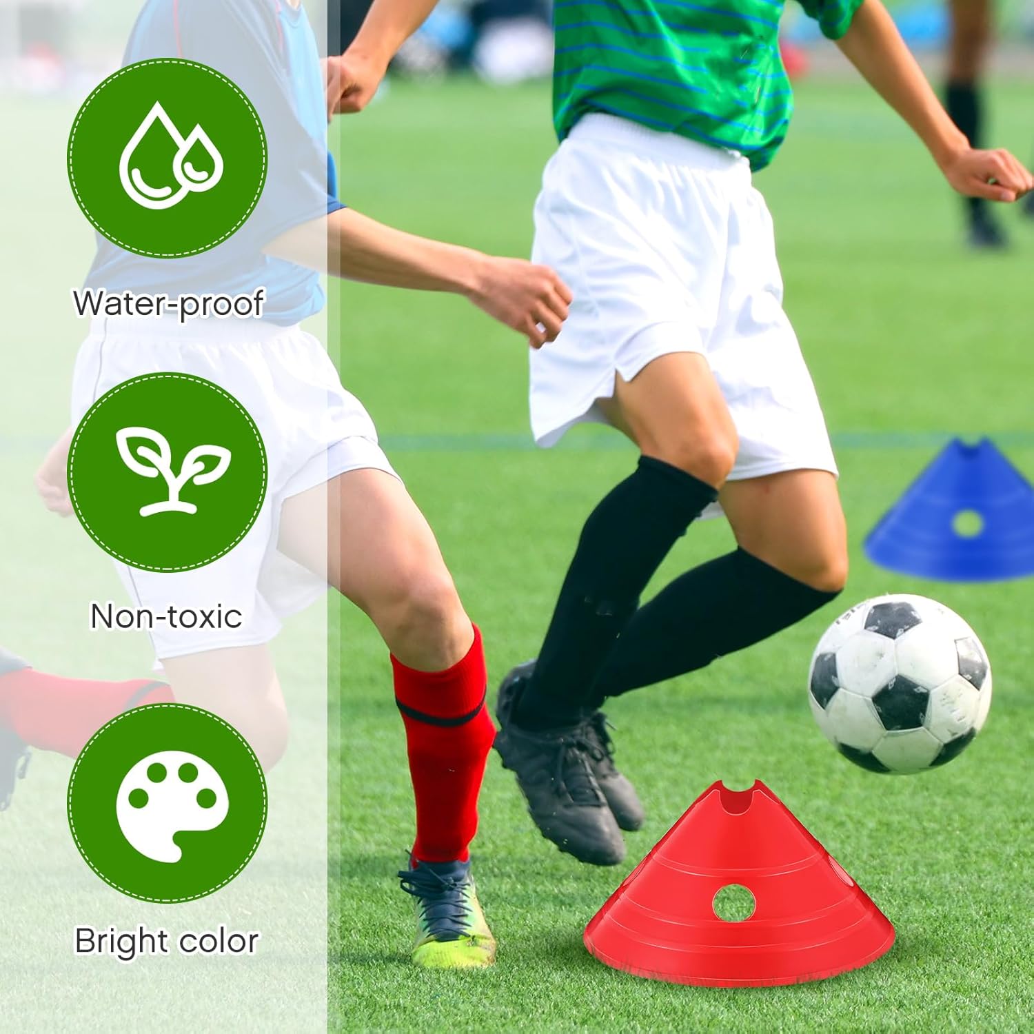 - Wide Range of Applications: these jumbo cones for sports training are not just for soccer; You can also use them for other sports agility training, such as football, basketball, ice rink and indoor and outdoor activities