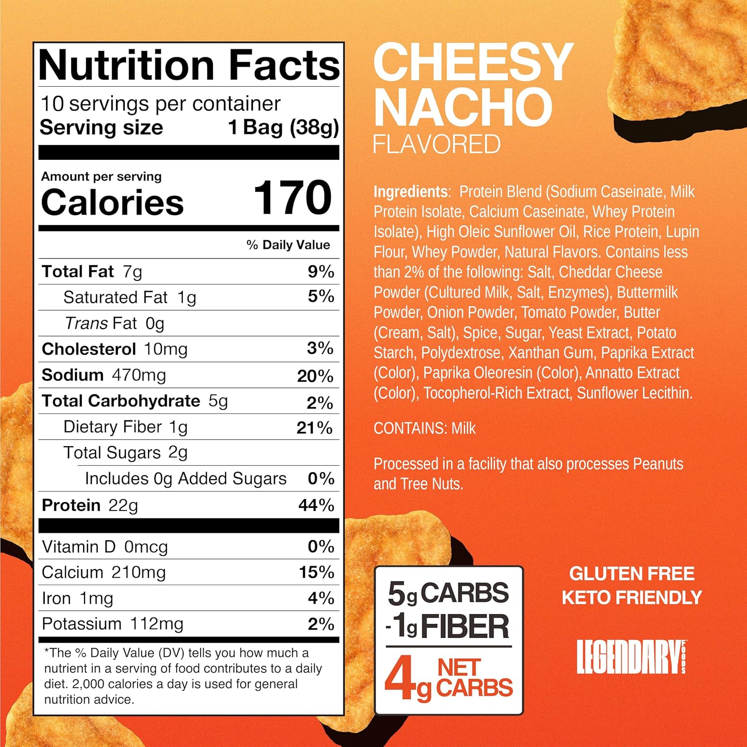 Legendary Foods Cheesy Nacho Protein Chips – Popped Tortilla Style – 22g High Protein, 4g Net Carbs, Low Sugar, Gluten Free, Keto Snack Packs – 10 Count – Healthy Crunchy Chips