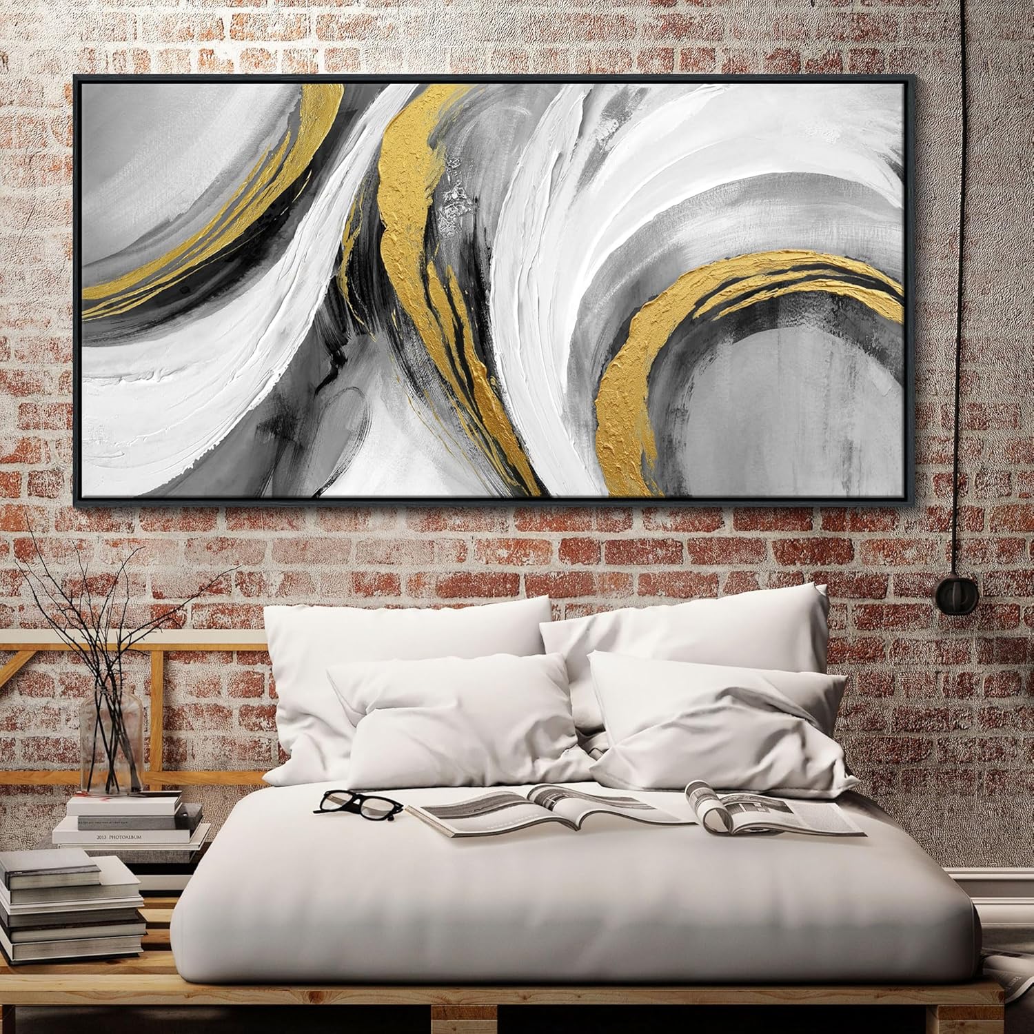 - Abstract Wall Art:This 29x58 in abstract wall art living room is black, white and gold texture graffiti, golden lines are like shining stars, shuttling in the universe of black and white,adding a luxurious and elegant atmosphere to the bedroom wall art.