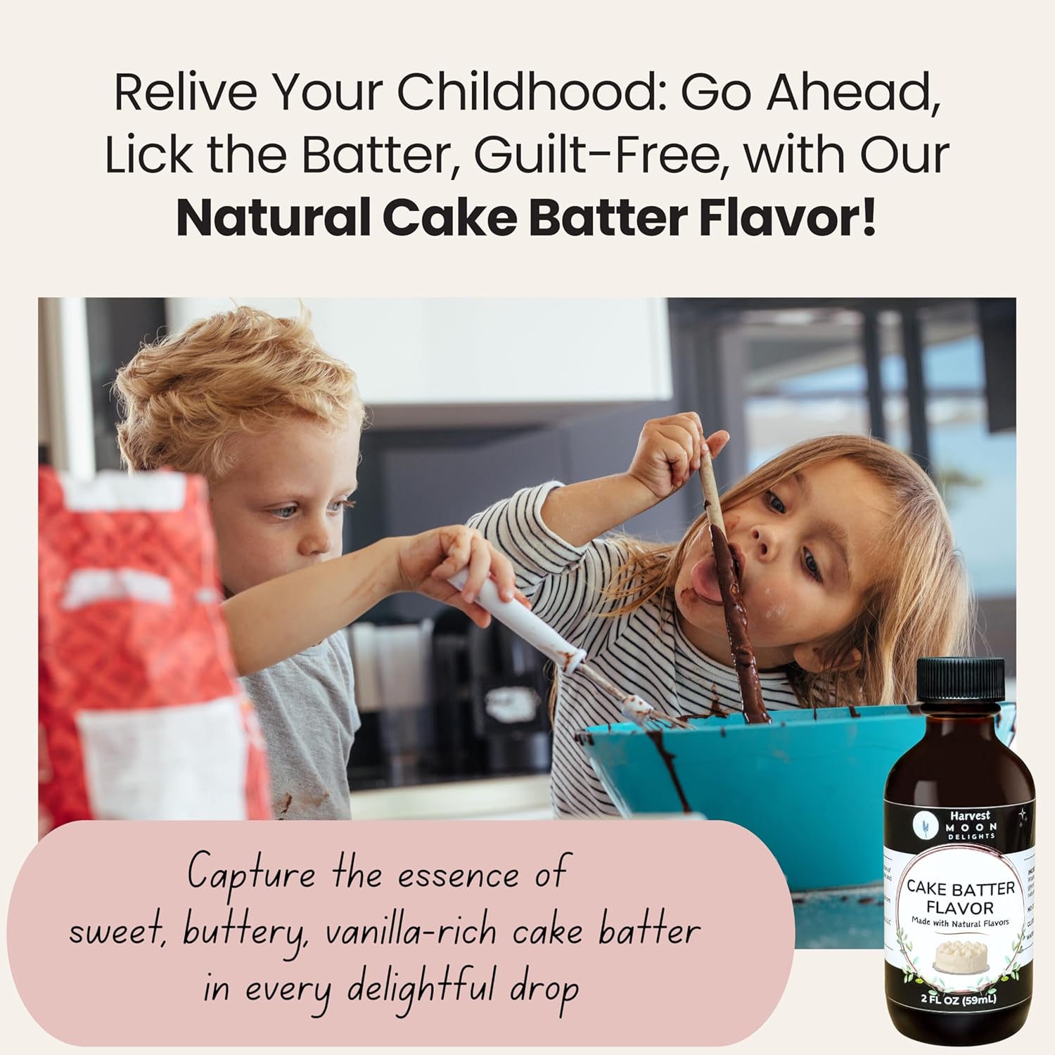 Natural Cake Batter Extract - 2 oz - Water-Soluble - By Harvest Moon Delights - Cake Batter Extract for Baking, Ice Cream, Drinks, and Candy - Flavoring, Sugar Free