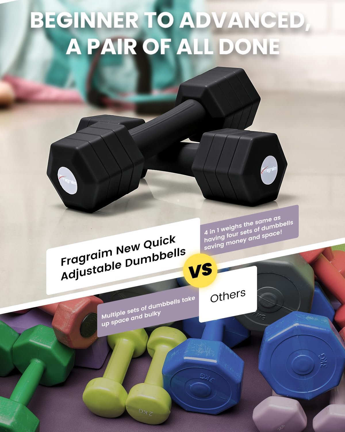 - Full Body Workout: Choosing the suitable adjustable dumbbell set women and matching with it different postures helps you work for almost all muscle groups. This dumbbell set 10 lbs is compact and takes little space, allowing you can exercise anywhere you want.