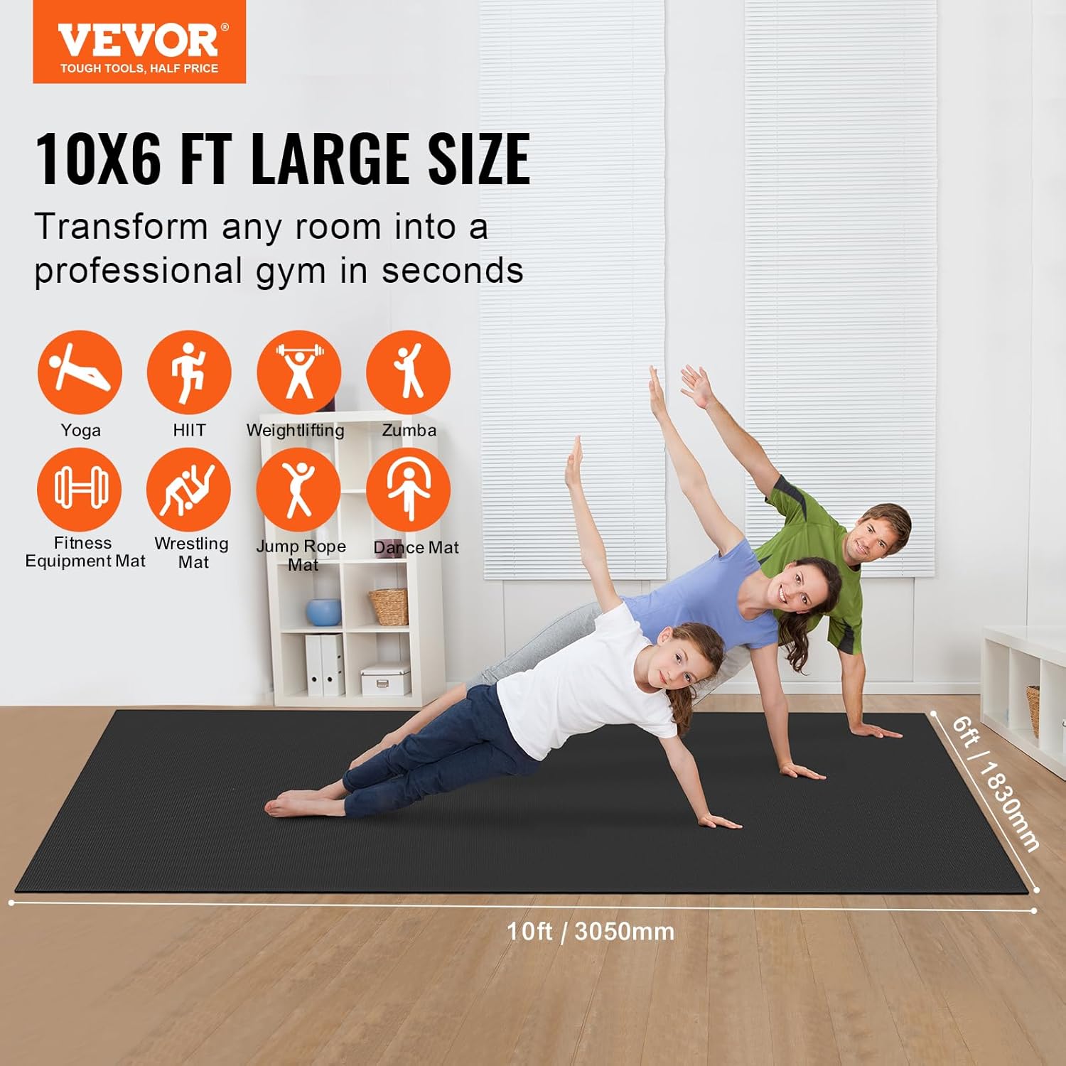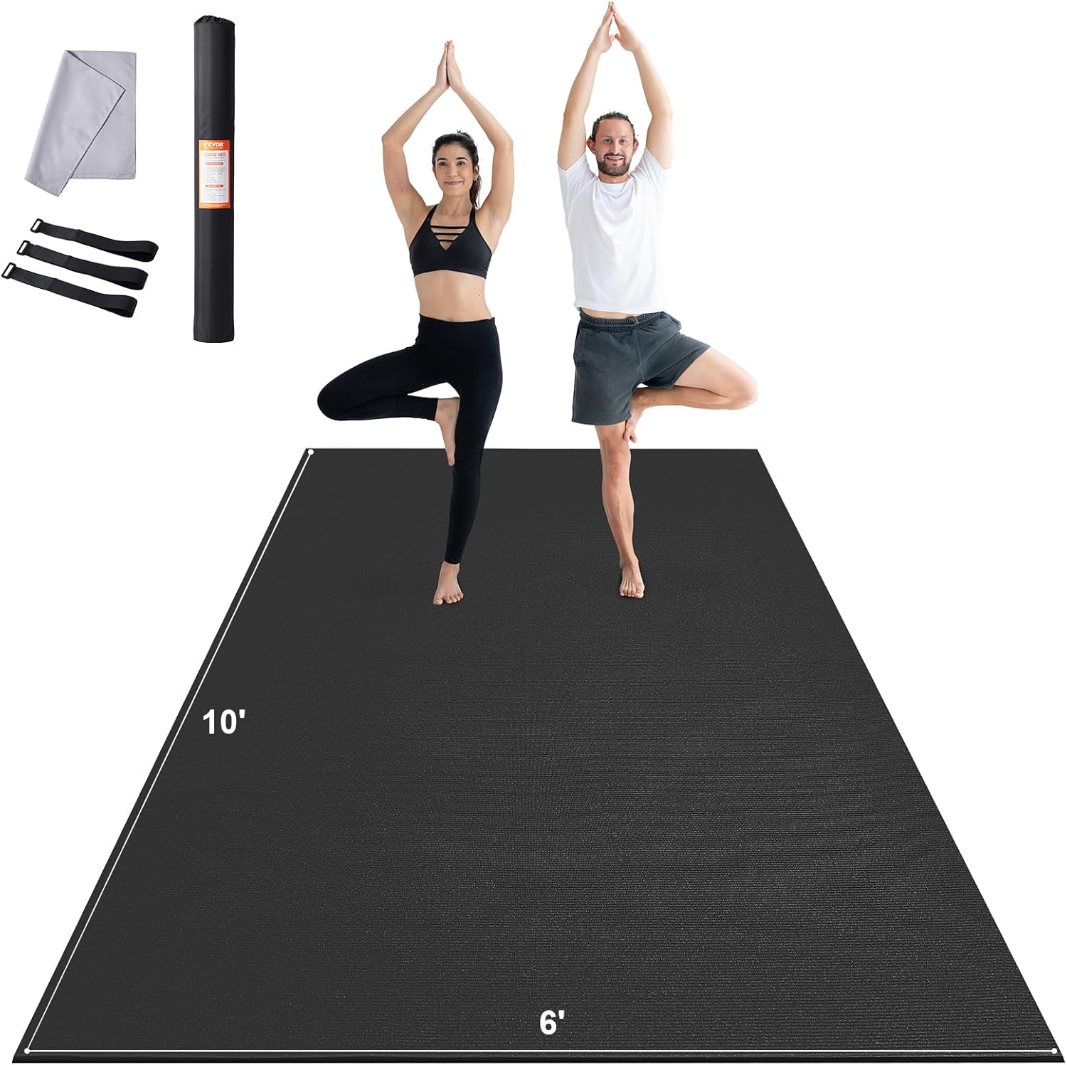 VEVOR Large Exercise Mat, Non Slip High Density Premium Yoga Mat, Exercise Yoga Mat for Men Women, Fitness & Exercise Mat with Bag & Carry Strap, for All Types of Home Yoga, Pilate & Floor Workout