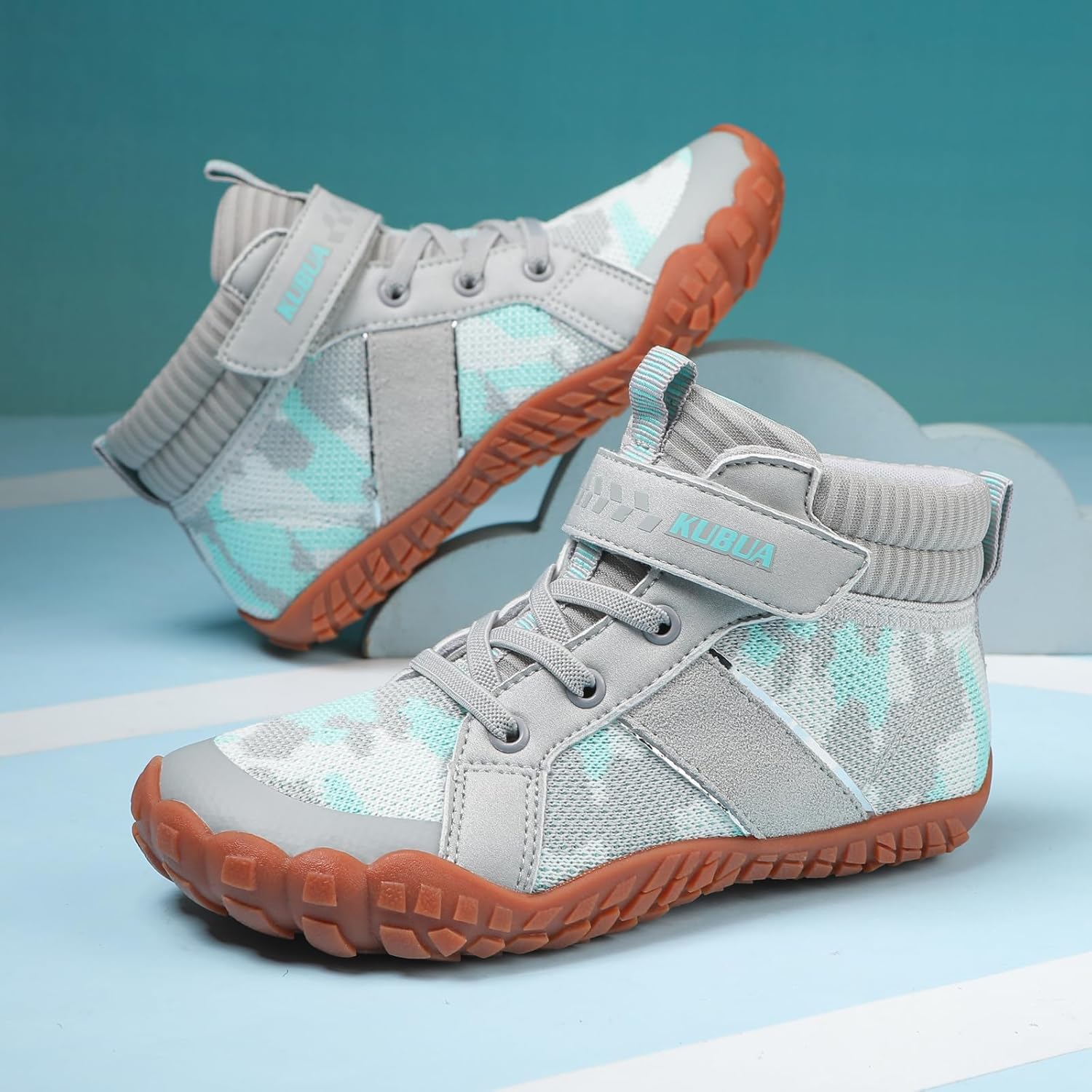 KUBUA Kids High Top Barefoot Shoes Boys Girls Minimalist Sneakers Lightweight Comfort Zero Drop Shoes Toddler Little Big Kid