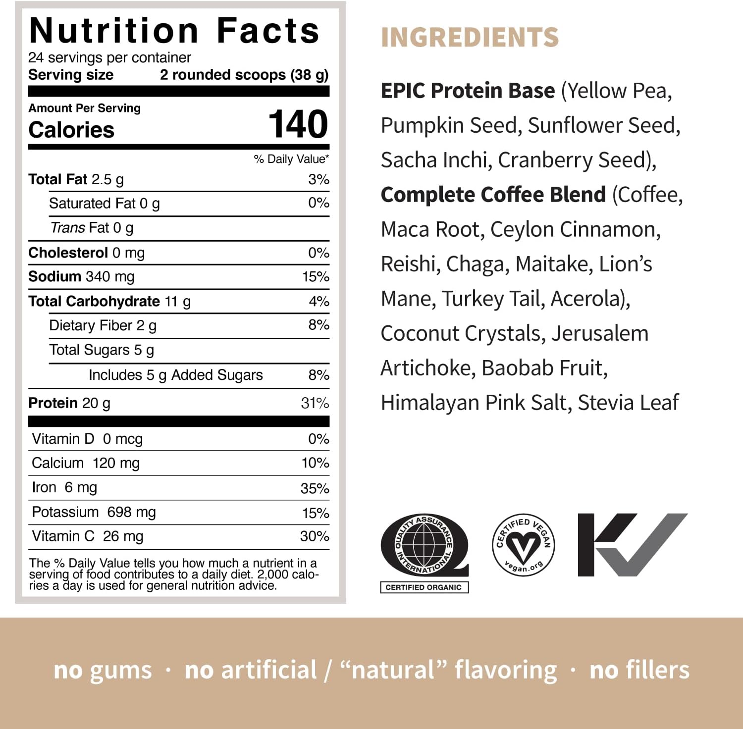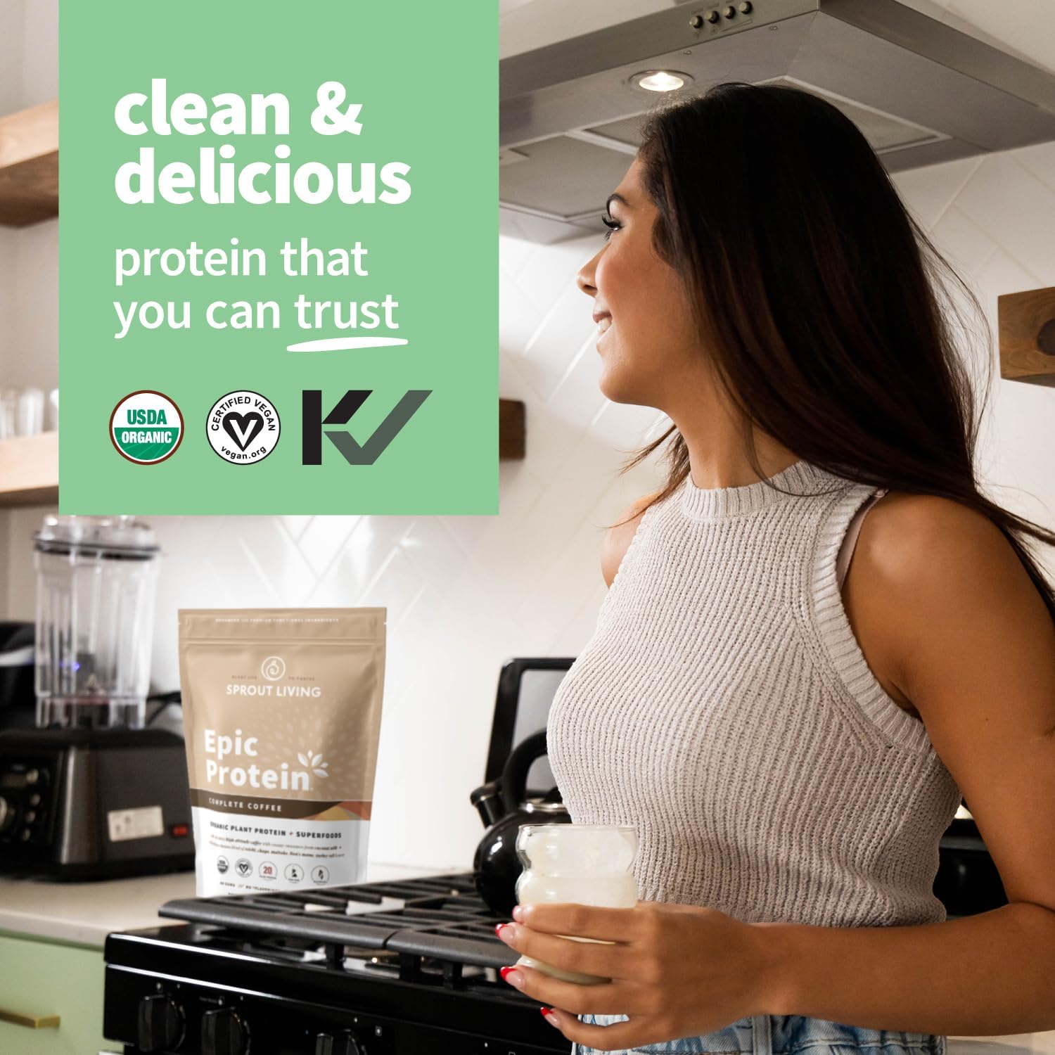 Sprout Living, Epic Protein, Plant Based Protein & Superfoods Powder, Complete Coffee | 20 Grams Organic Protein Powder, Adaptogens, Mushrooms, Vegan, Non-GMO, Gluten Free (2 Pound, 24 Servings)