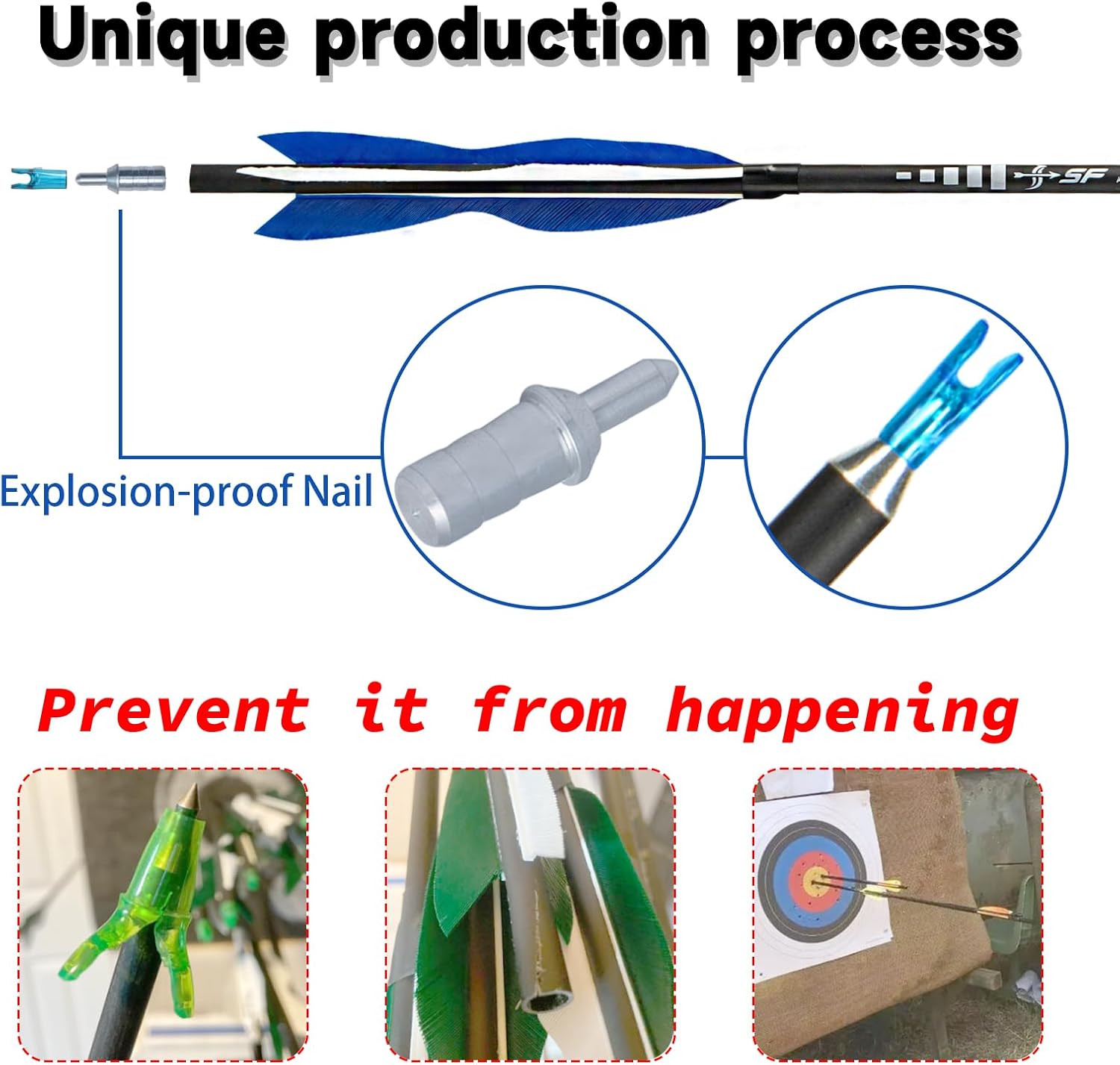 - Every arrow is equipped with Pin Bushing to prevent arrows from bursting the shaft,which can effectively reduce the damage rate of arrow shafts