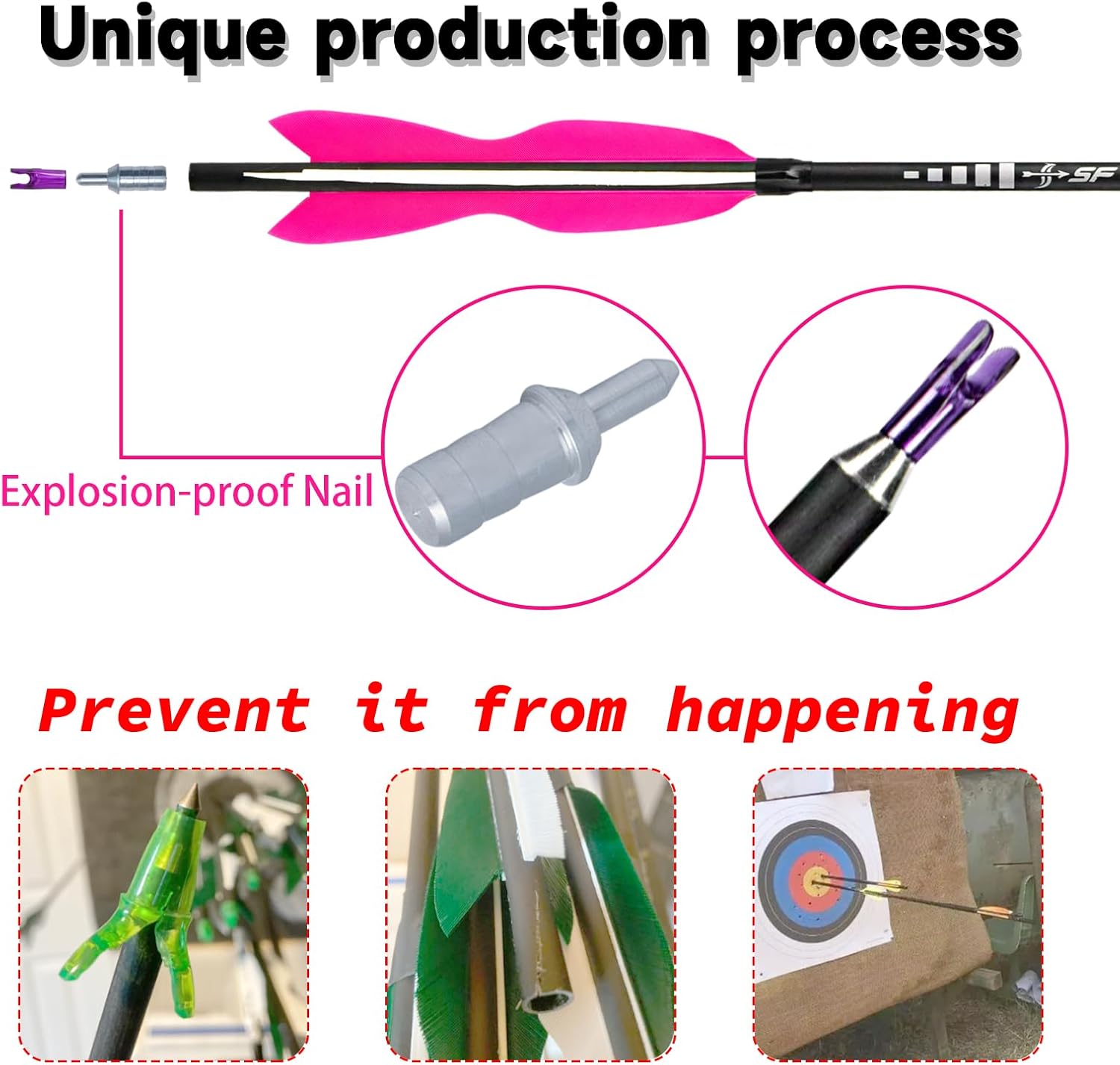 S F 30" Traditional Archery Carbon Feather Arrows 500 Spine Traditional Arrows Long Bows Archery Compound Bow Arrows Arrows for Compound Bow Arrows for recurve Bow(12 Pack)