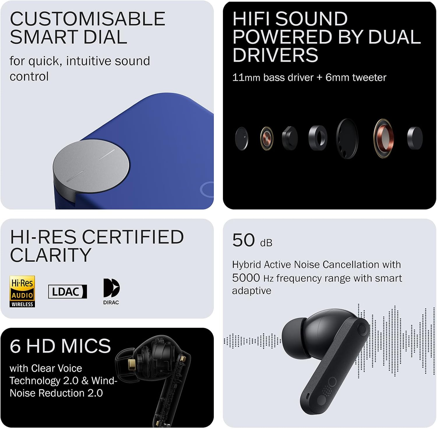 CMF Buds Pro 2 Wireless Earbuds, Hi-Res Audio with LDAC, 50 dB Hybrid Noise Cancelling Earbuds, Ultra Bass Technology, Bluetooth 5.3, 43H Play Time with Charging Case, 6 HD Mics Headphones, Blue