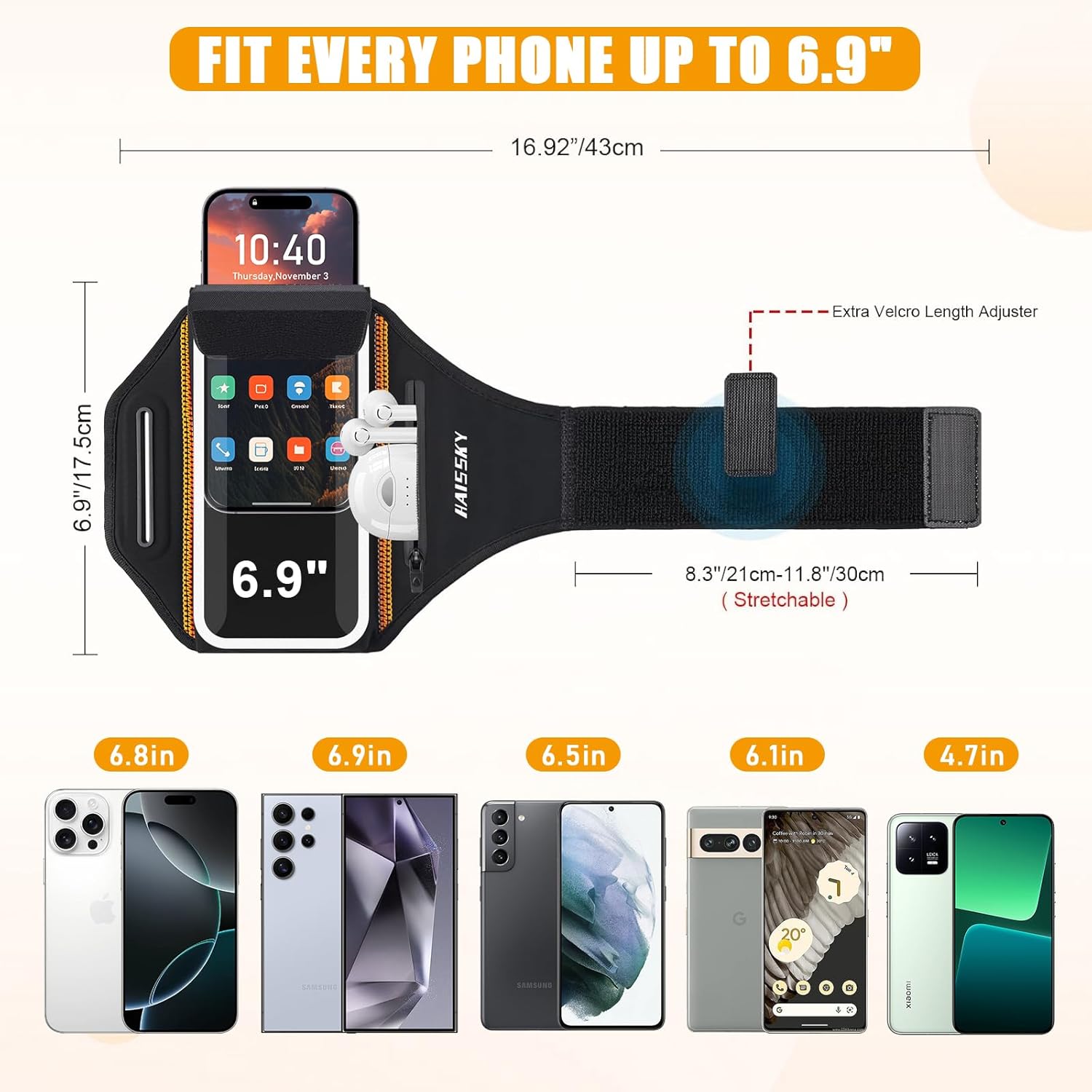 - 【Universal Compatibility & Touchscreen Friendly for Your Phone】This phone arm bands for running can fit most smartphones up to 6.9 inches, including iPhone 15/14/13 Pro/Plus and Galaxy S20/S10. The clear and sensitive touchscreen cover allows easy access to your phone's features, such as changing songs, sending texts, and taking calls, without removing it from the armband. Stay connected on-the-go without any interruptions