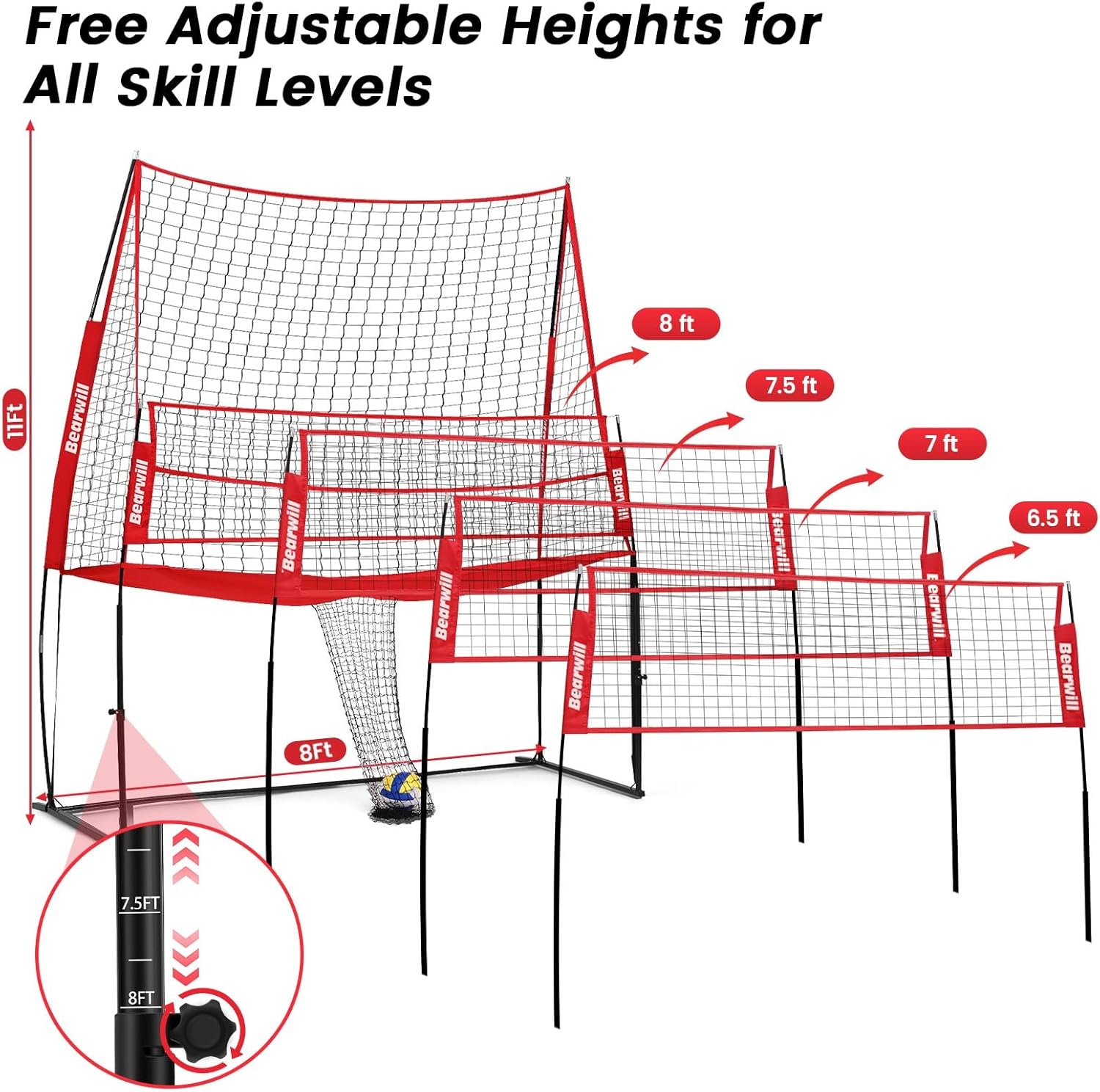 - Easy Setup and Portable: Bearwill volleyball practice net comes with a clear, straightforward instruction manual, allowing you to set up in minutes without any tools. Easy to store and carry with the attached carry bag, allowing you to train anytime, anywhere-indoors or outdoors