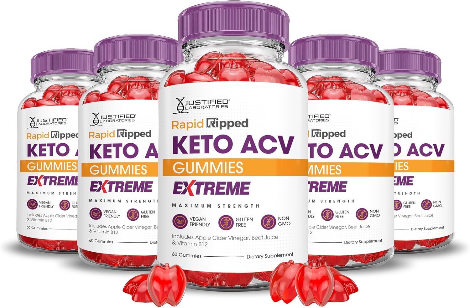 Justified Laboratories (5 Pack Rapid Ripped Keto ACV Gummies Extreme 2000MG Rapidripped Keto Gummies Apple Cider Vinegar Formulated with Pomegranate Beet Juice Powder B12 Vegan Non GMO 300 Gummys