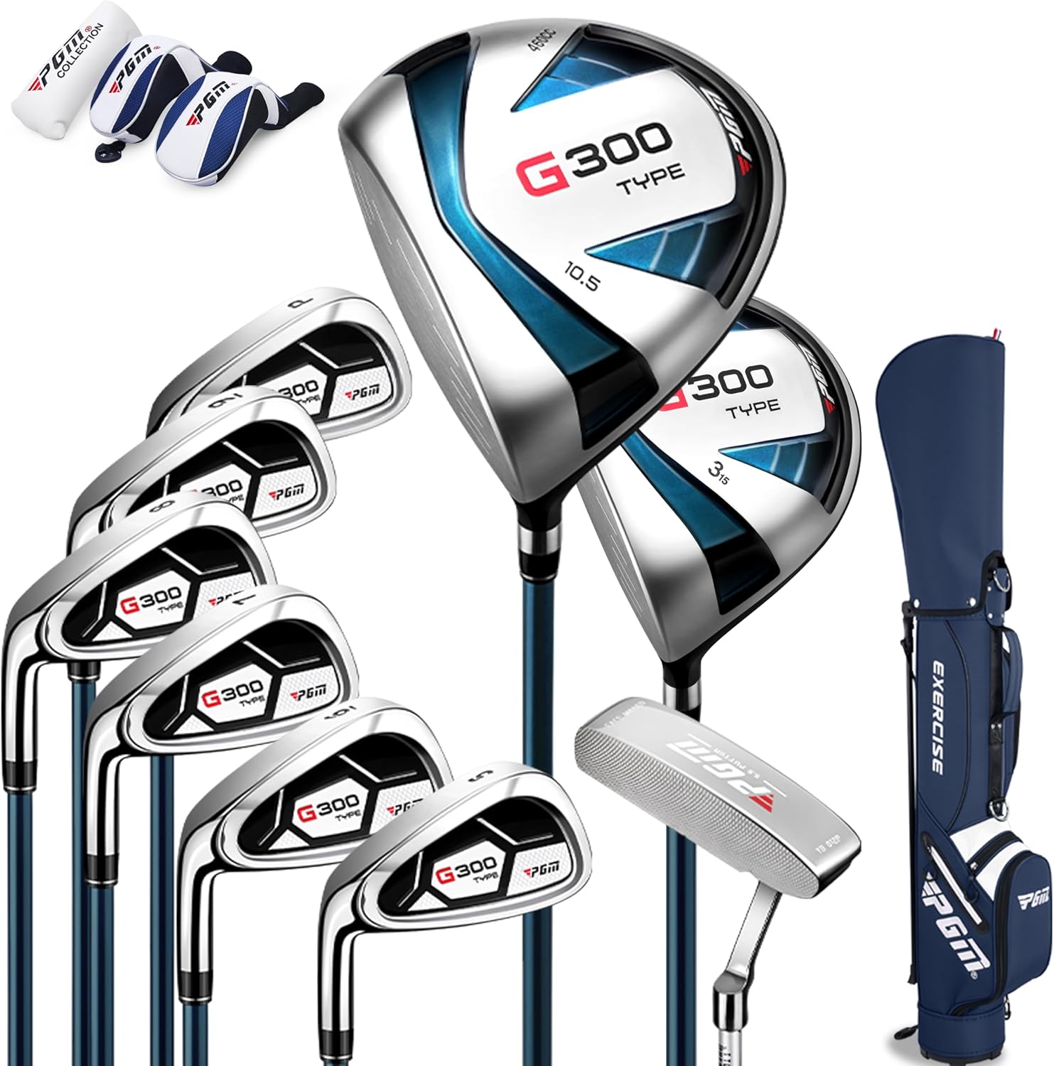 PGM Men's G Type Complete Golf Club Set - Titanium #1 Driver, Draw-Biased Hybrid, High-Strength Iron Set, High Forgiveness Putter, with Stand Bag
